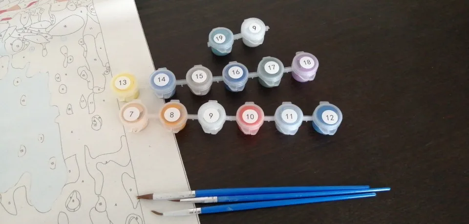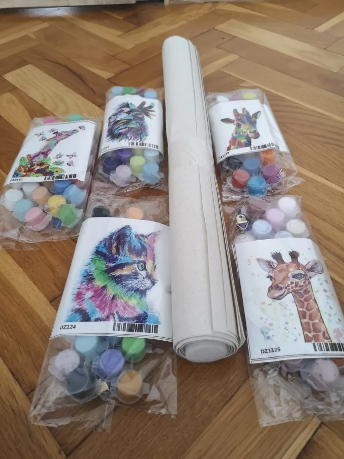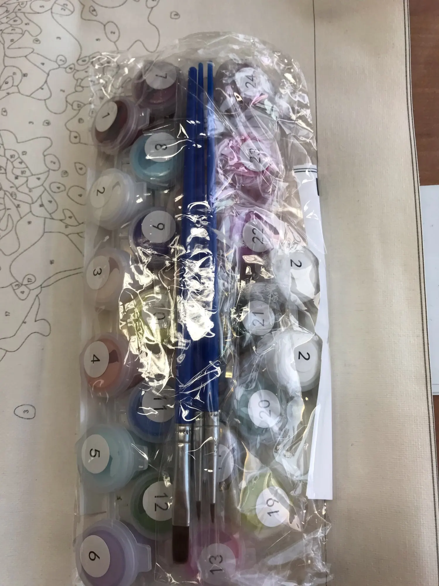 Доставка после месяца в Польшу. Первый раз от этого продавца. Включает в себя картинную краску после цифры, краски, кисти, но, к сожалению, нет печатных карт на картинку с цифрами, если нужно иметь возможность проверить печать того, что это номер. В комплект входит только миниатюрное изображение после того, как намалову (т. е. Как будет выглядеть готовое изображение).