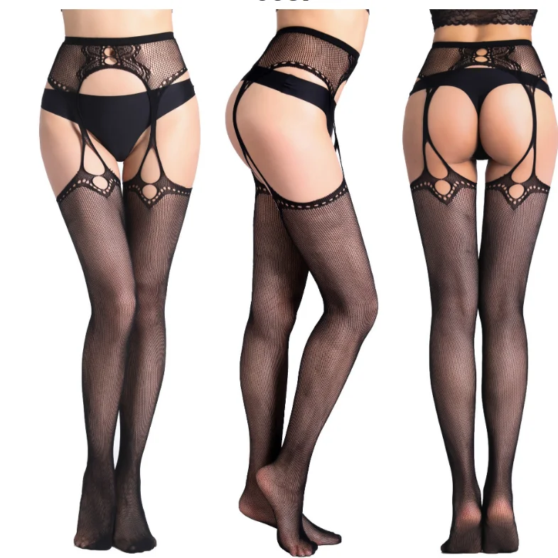 Женское сексуальное нижнее белье, эластичные чулки, прозрачные черные чулки с подвязками, чулки до бедра, прозрачные колготки с открытой промежностью, колготки