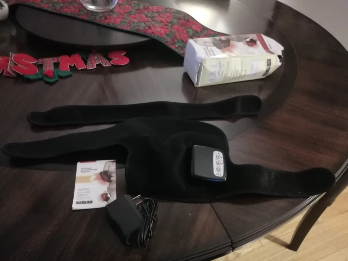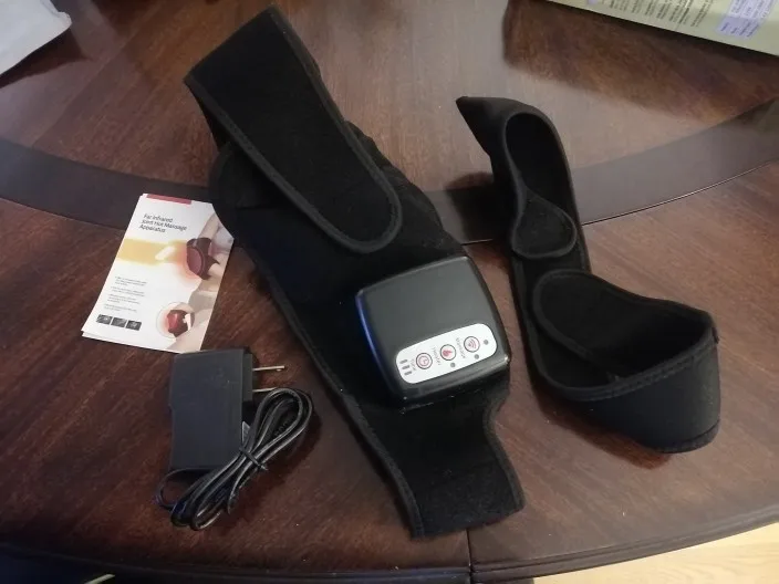 AGAIN, So happy with healthcare items bought on AliExpress! All the supports and braces I have bought on Ali have been great! This one too!! The package was crumpled, but the item was fine. It had some charge in it so I could test it out right away and it works so well! Heated up immediately and the vibration, though a little noisy, felt great! The brace includes an extra strap. I was able to use the brace on my knee without the extra strap, but just barely. I have a large thigh, so most people won't need for the knee, but it allows you to use as a shoulder brace. I can't say enough about it, and worth getting the adapter, too. Only one setting for heat and massage each, it can get quite warm so not good for those who can't remove it when necessary. It has timer functions, too. Product arrived 5 days late, but that doesn't matter to me. Absolutely worth the money for this. It reduces pain, inflammation and improves circulation needed for healing. Thanks great seller for great item!