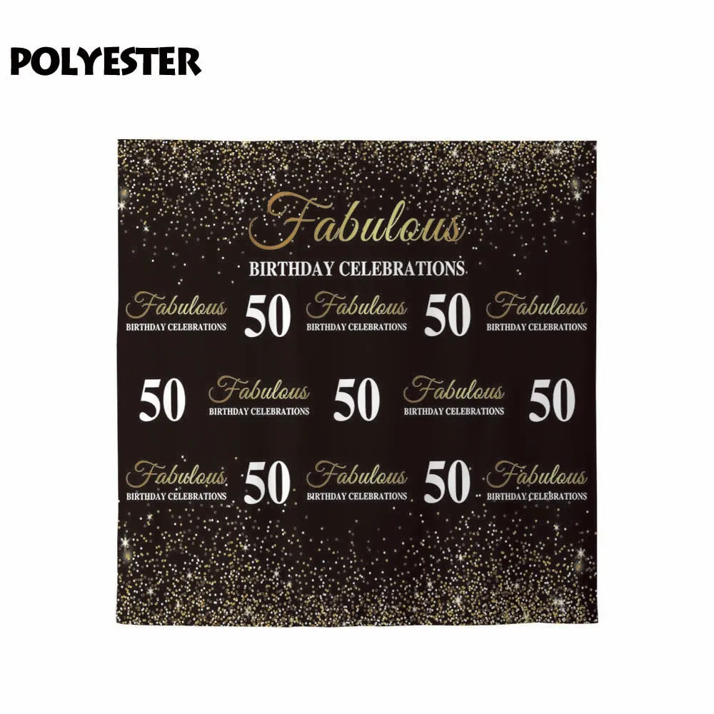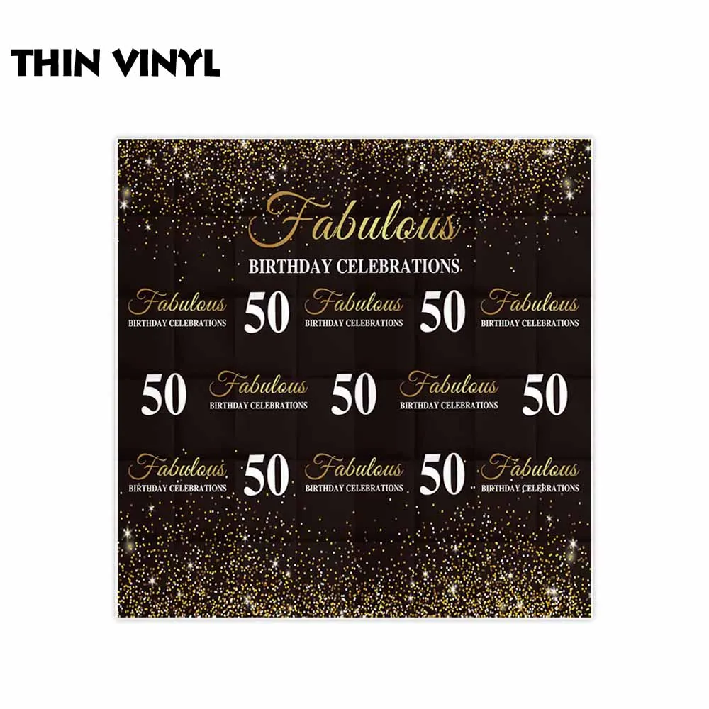 Allenjoy Фотофон Сказочный 50 день рождения Подпись стены черный золотой блеск Вечеринка фотография фон