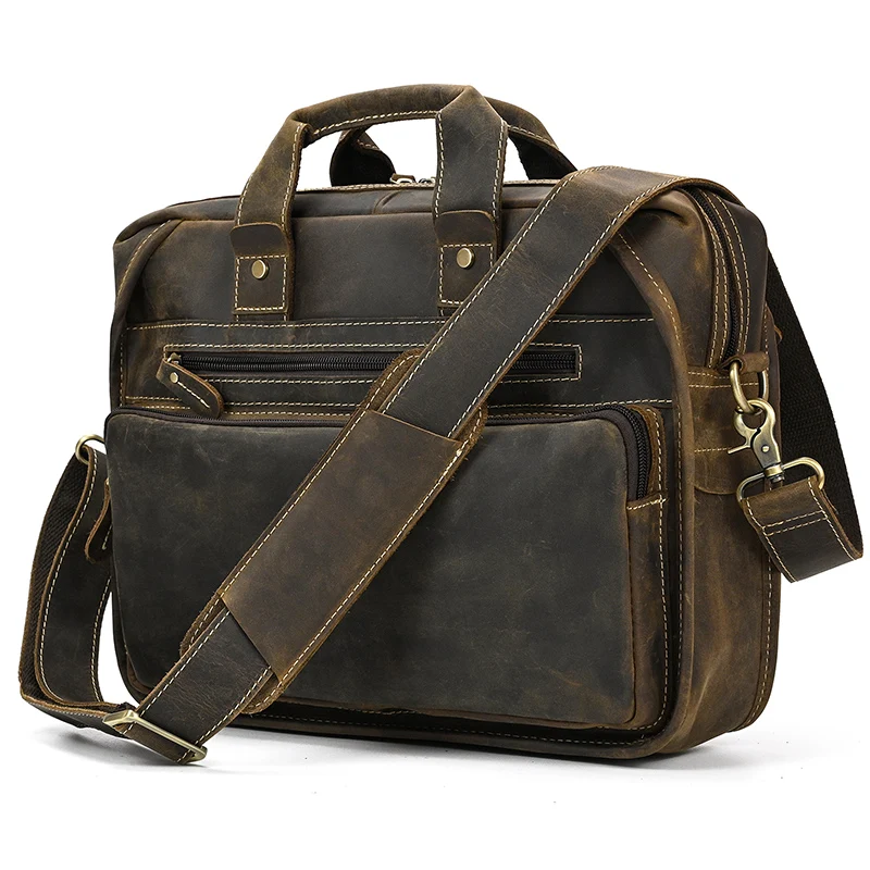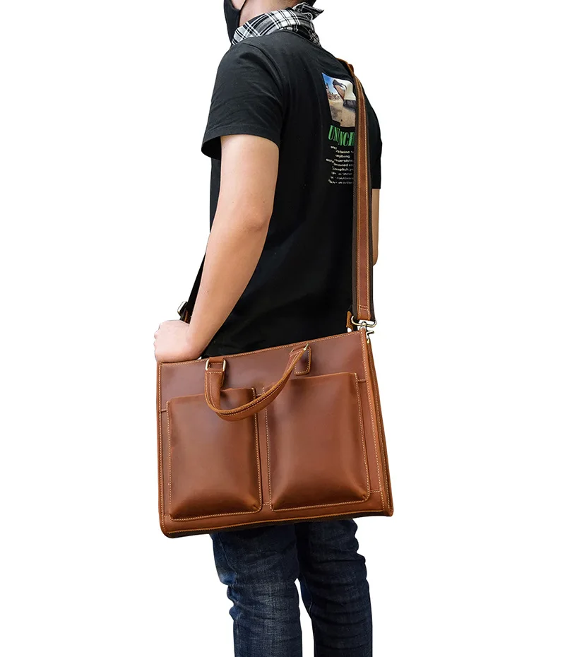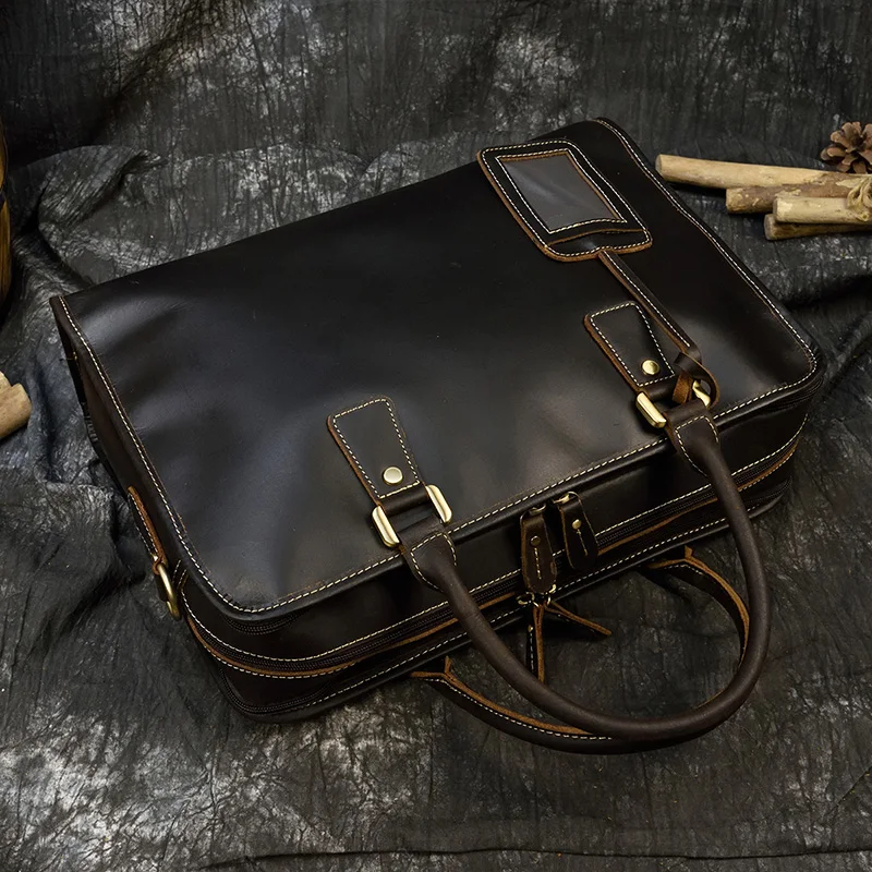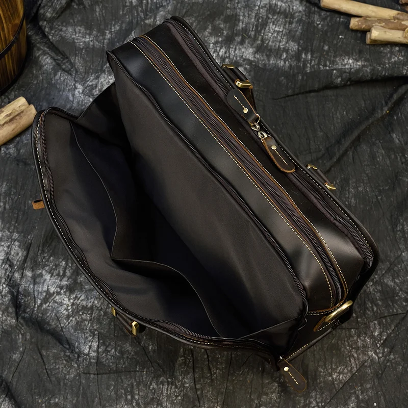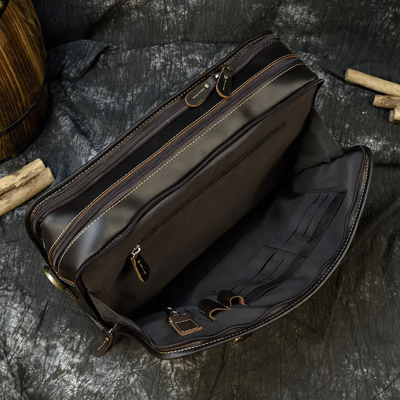 Мужская сумка на двойной молнии Newsbirds, чехол для ноутбука 15, 16 дюймов, 100% натуральная воловья кожа, мужская сумка на плечо
