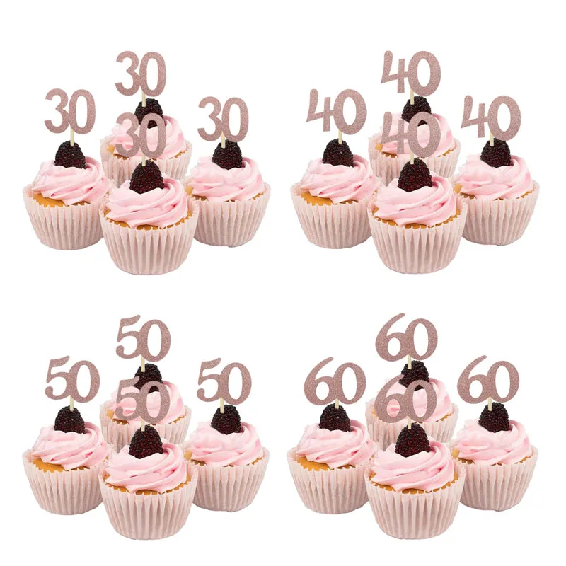Chicinlife 10 шт. 30 40 50 60 лет, топперы для кексов, день рождения, юбилей, взрослые, 30th аксессуары для торта на день рождения, товары