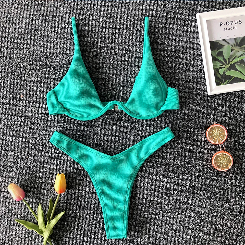 OMKAGI купальник женский однотонный бикини купальник с высоким вырезом сексуальный пуш-ап бикини купальный костюм Пляжная одежда на косточках новый комплект бикини 2021