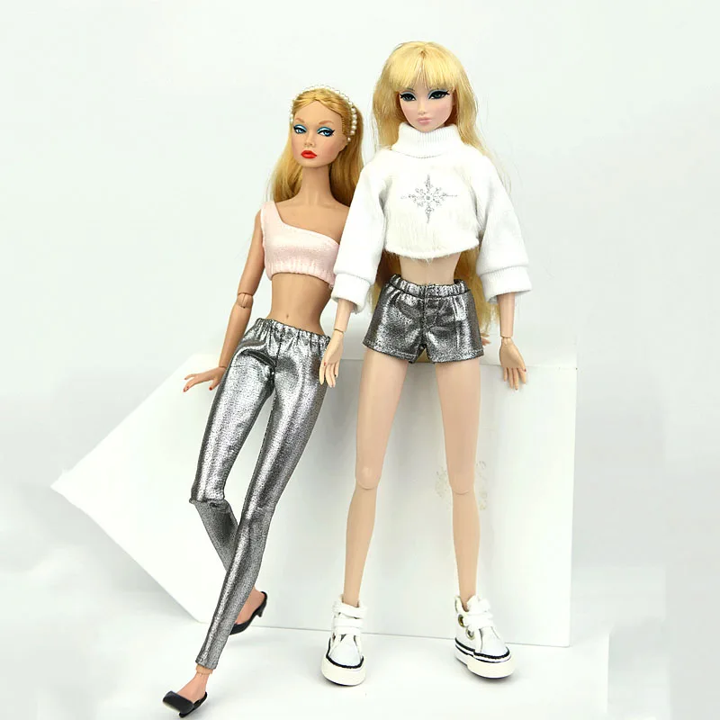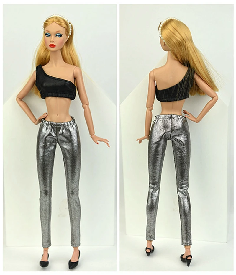 Брюки из искусственной кожи цвета металлик, серебристого и золотого цвета длинные штаны для куклы Барби модные брюки для 16 аксессуары для кукол