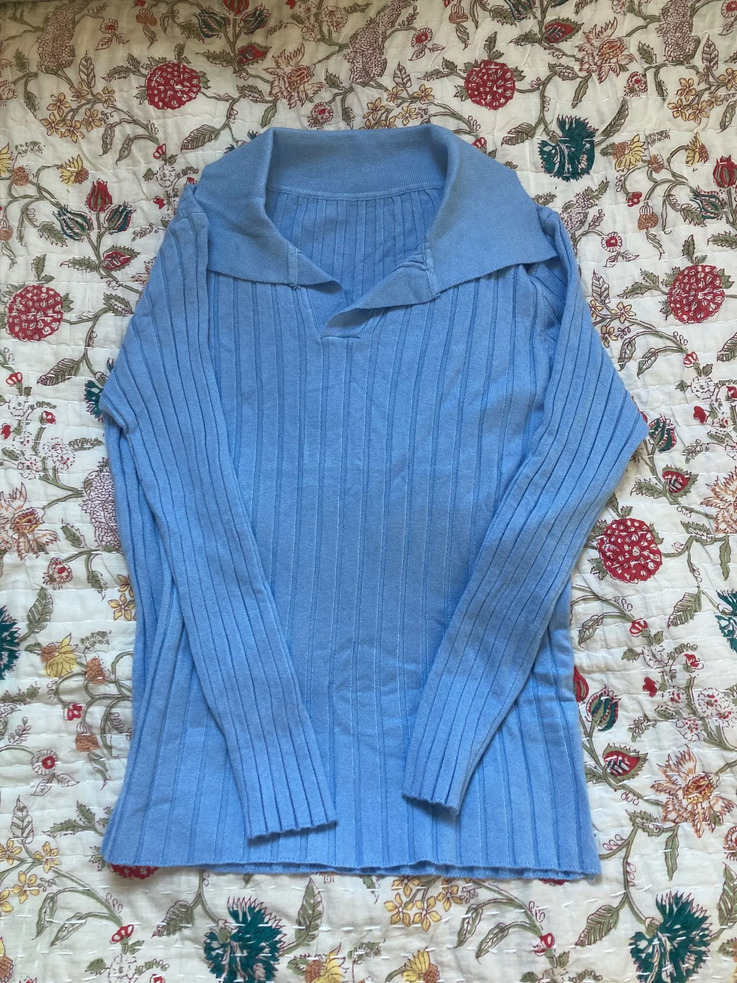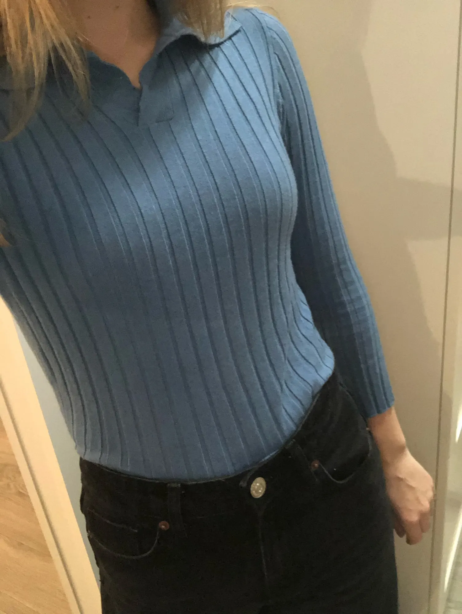 Не соответствует картинкам. Цвет более насыщенно голубой. Рукава сильно короткие , на рост 170 очень сильно короткие. Воротник не стоит как на моделе , потому что кофта сшита не по правильным пропорциям . Нет петельки под палец как на фото. Из плюсов - очень мягкая синтетика.