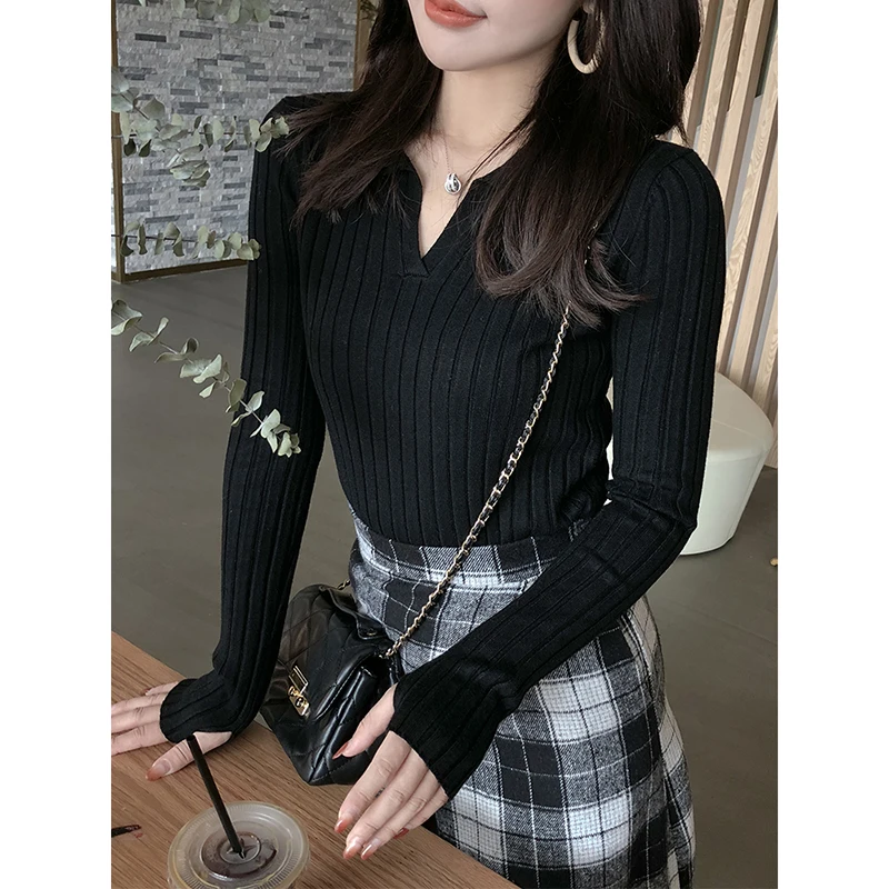 Свитер женский gkfnmt, однотонный, с отложным воротником, для работы и офиса, Осень-зима, 2021