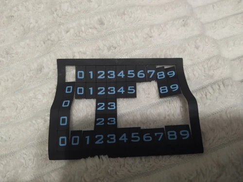 Цифры светятся (читал в отзывах, что не светятся), качество приемлемое, заусенцев нет, в комплекте - полоска скотча 3М. Цифр много (5 линеек с двойным нулем), изготовлены из полимерной магнитной ленты, вытаскиваются отрыванием по местам насечек. Немного смущает, что крайние цифры после установки затеняются корпусом, но, в принципе, все равно можно нормлаьно разглядеть. Ночью совсем не будет этот момент смущать - они светятся ведь.