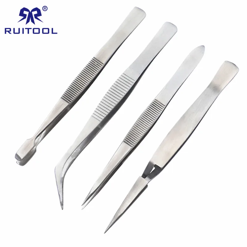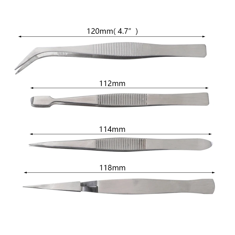 Набор прецизионных пинцетов из нержавеющей стали, 4 шт.