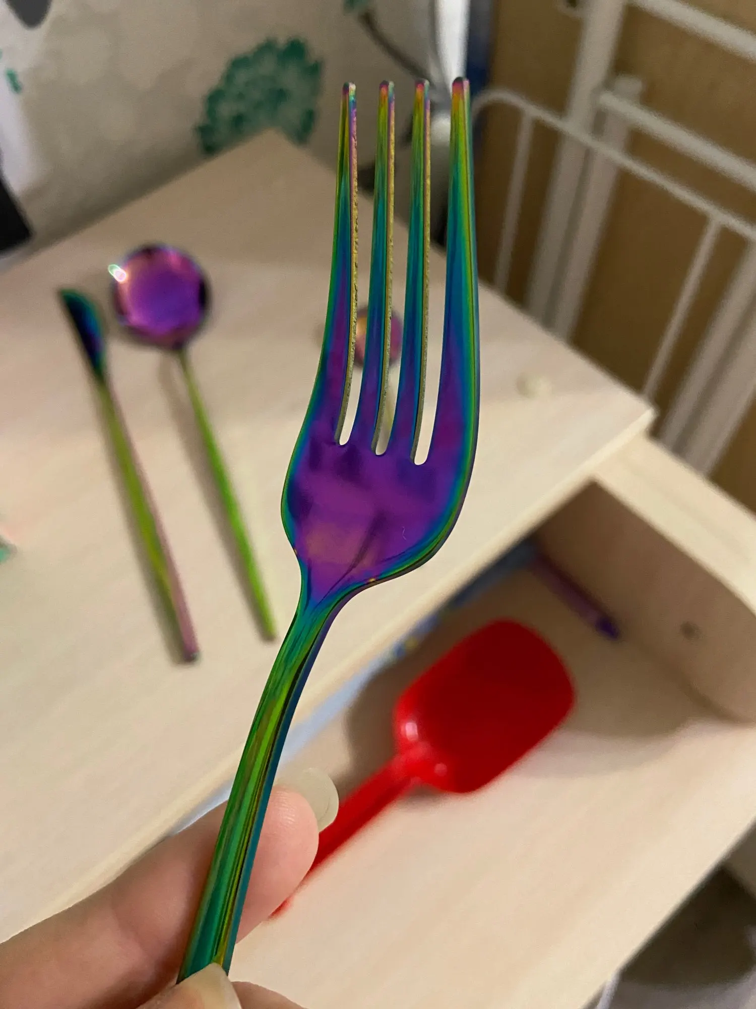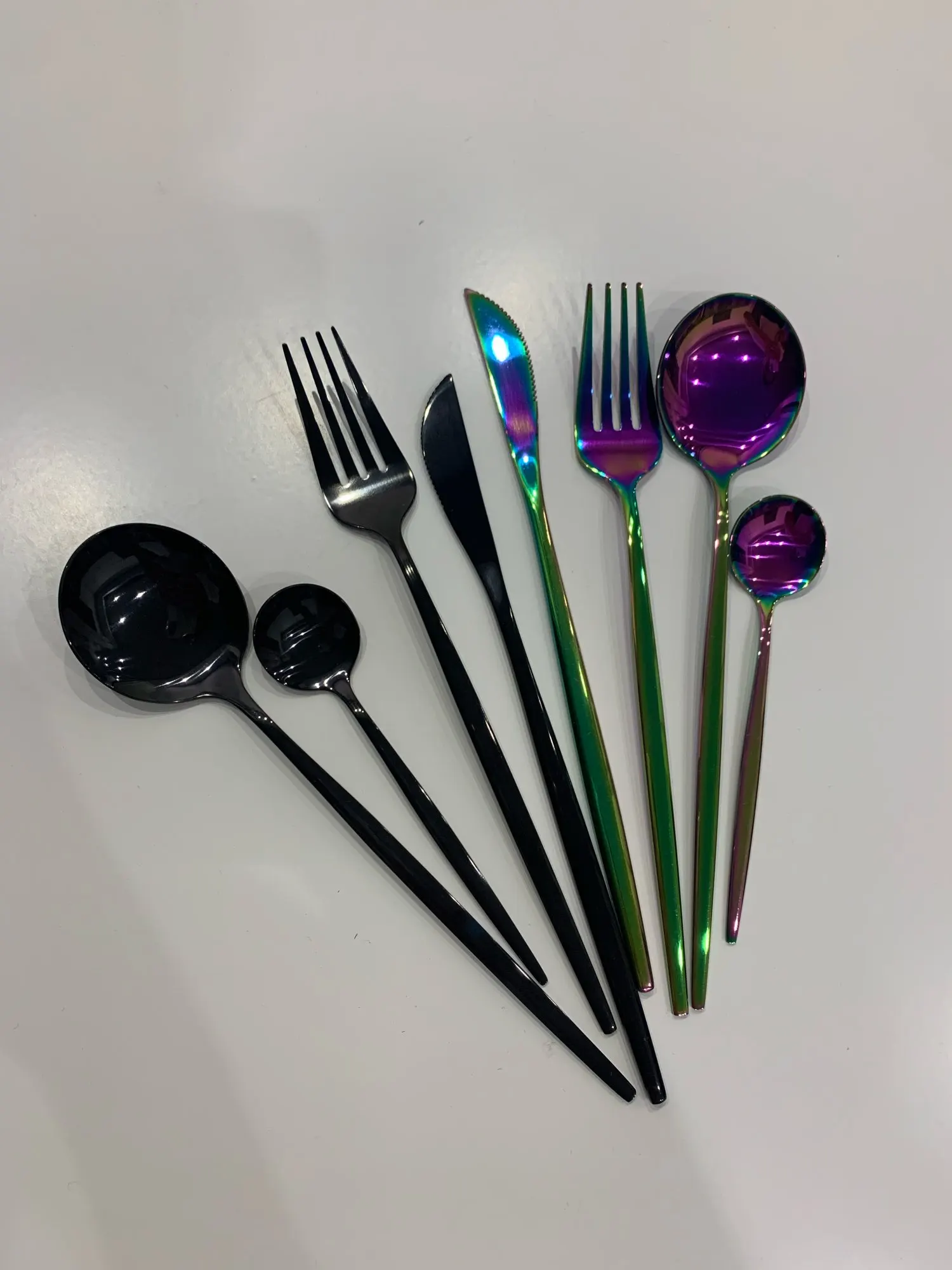 Набор разноцветных столовых приборов из нержавеющей стали, Радужный обеденный набор ножей вилка, кофейная ложка, набор серебряных изделий, набор столовой посуды для кухни