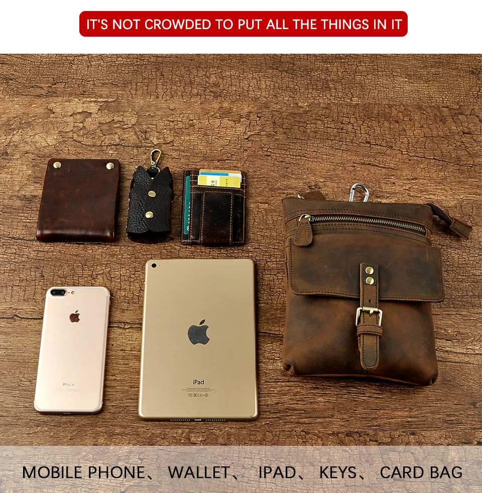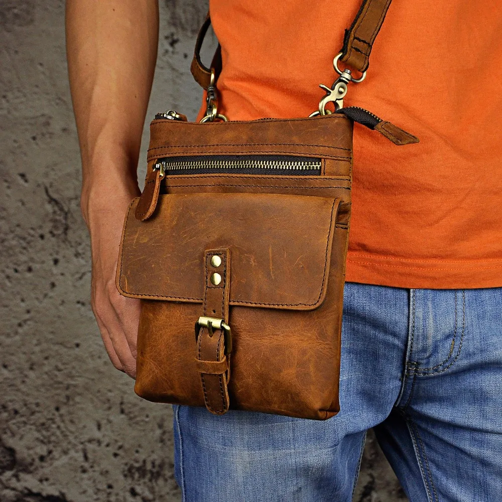 Кожаная мужская многофункциональная Повседневная сумка для планшета, сумка-мессенджер через плечо, модная забавная поясная сумка 6574-d