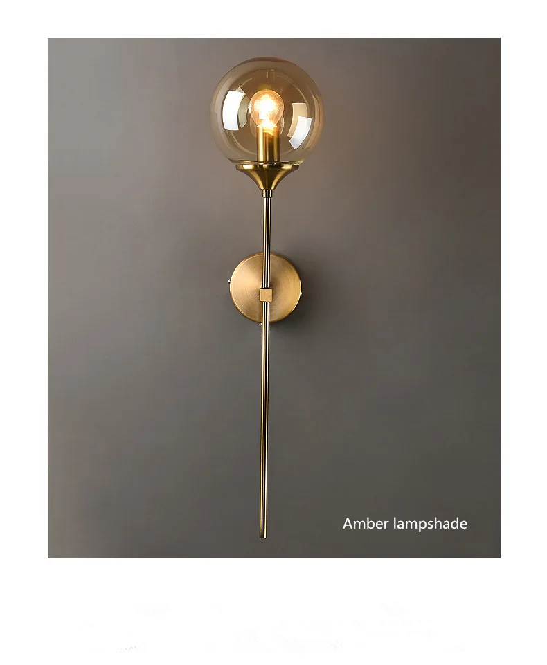 Современный прозрачныйянтарныйдымчато-серыйбелый стеклянный настенный светильник прикроватный бра настенный светильник для гостиной E14 Светодиодный теплый свет Скандинавская лампа