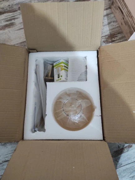 Заказ шёл месяц в Сумы. Упаковка хорошая, всё целое. Немного расстроена конечно... качество не на высоте, так на четверочку...с натяжкой: присутствуют мелкие коцки на металлических частях. Лампочка в комплекте. Цвет металла не настолько приятный как на фото, в реальности - медный какой-то, очень дешевит...