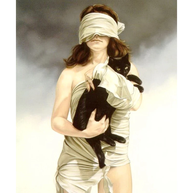 Новая Алмазная мозаика DIY 5D алмаз "женский с черными кошками"-5D алмазная вышивка Алмазный Узор страз
