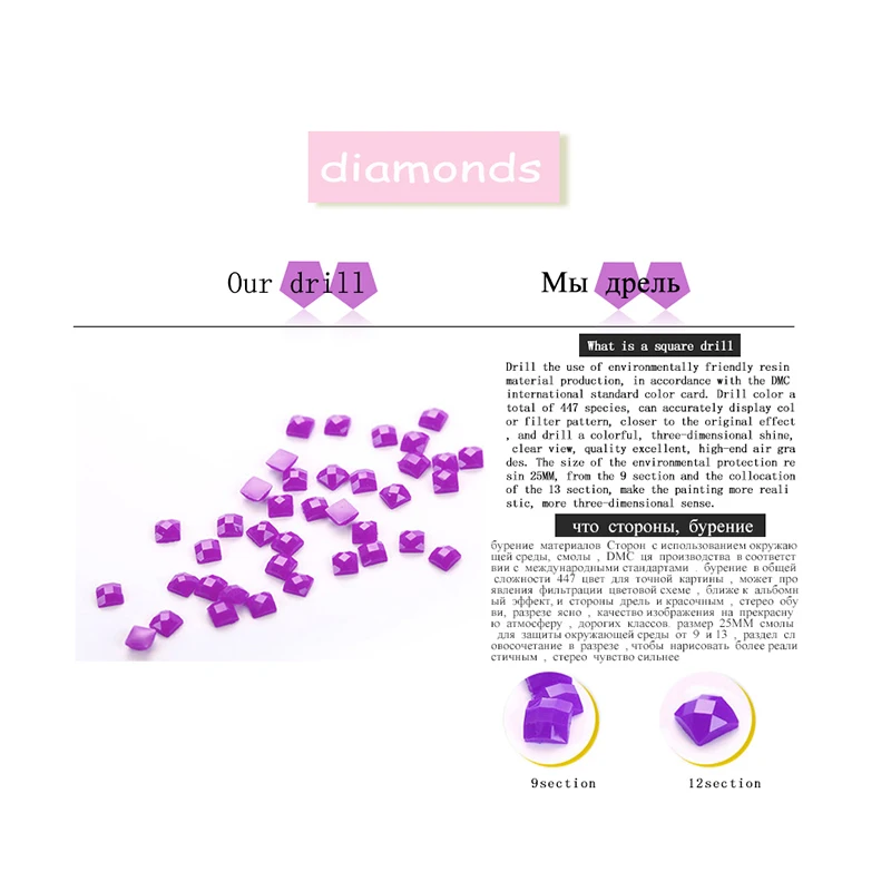 Чем больше размер, тем лучше эффект! Размер каждого алмаза: diamond. Если изображение сложное, маленький размер будет не очень хорошим! Если вам нужен большой размер, пожалуйста, свяжитесь с нами!