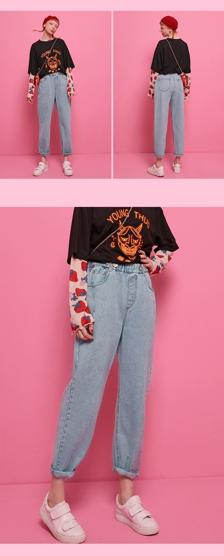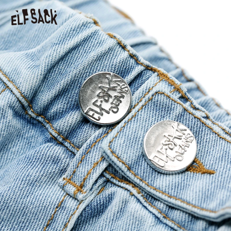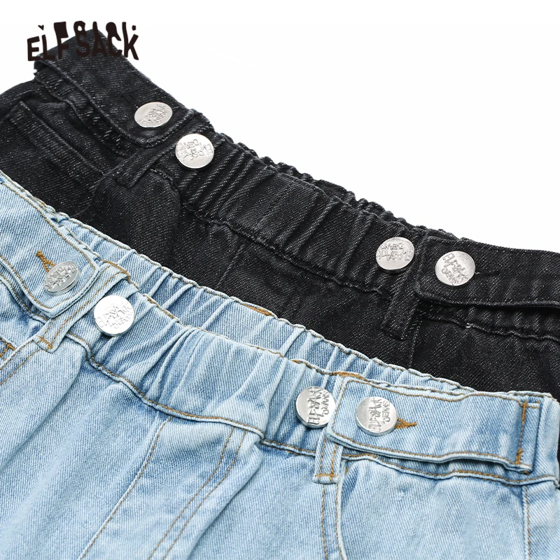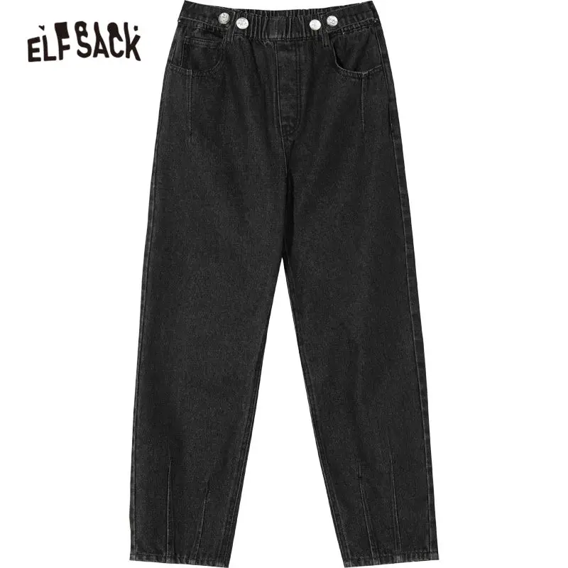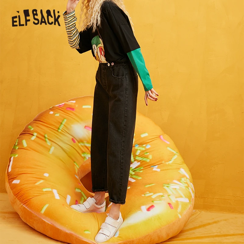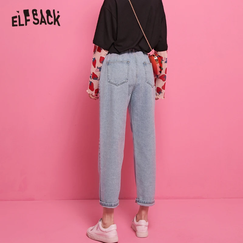 Женские джинсы с эластичным поясом ELFSACK, повседневные однотонные брюки-бойфренды в Корейском стиле, осень 2019