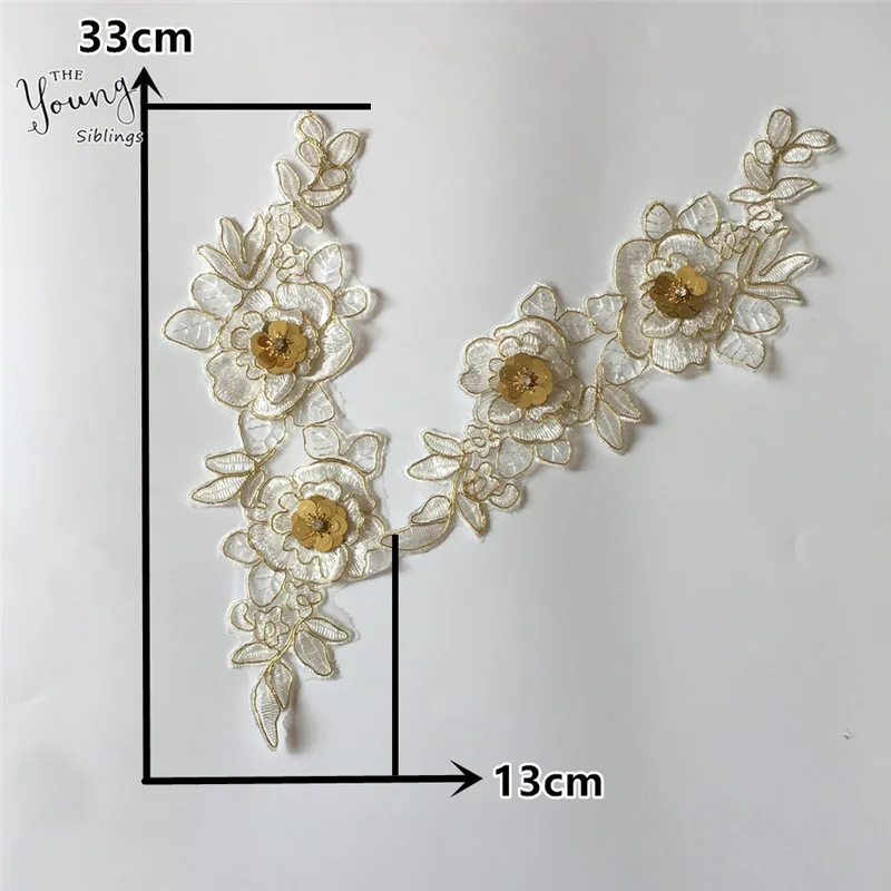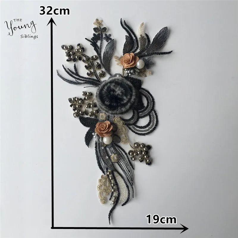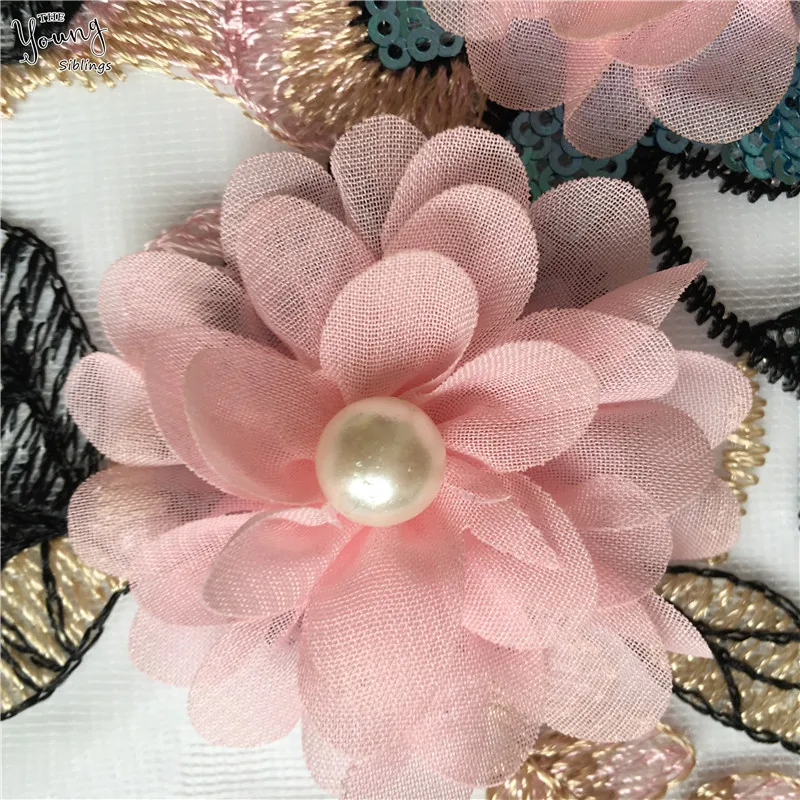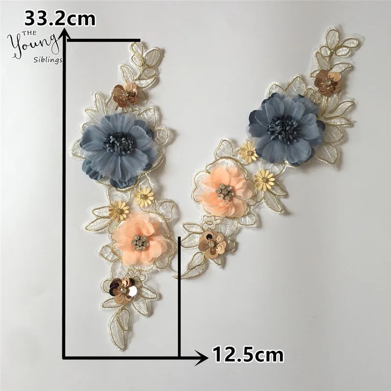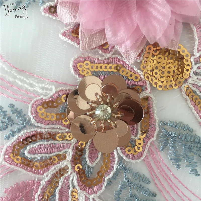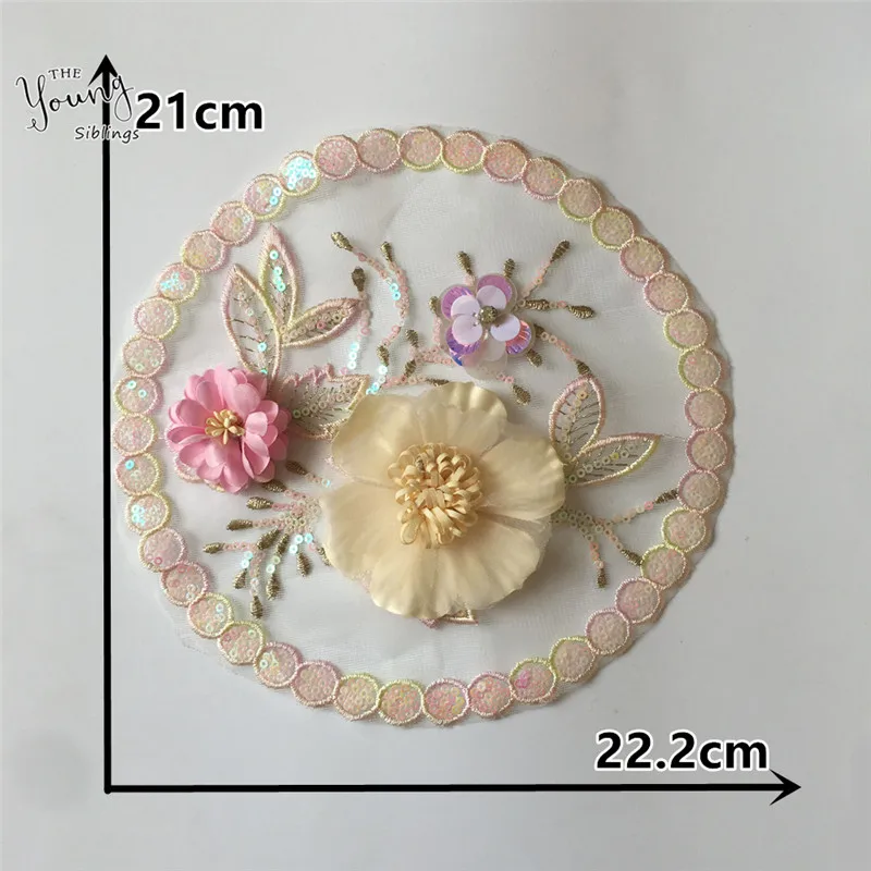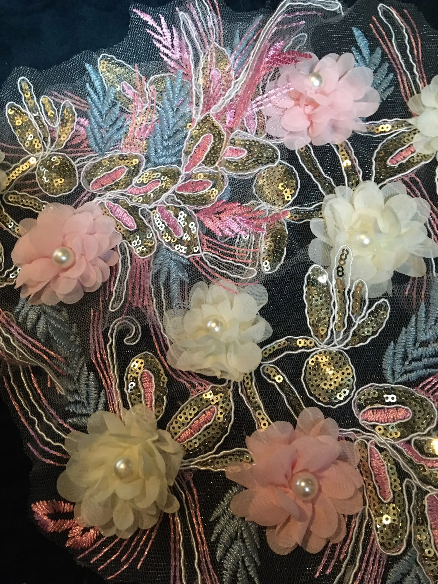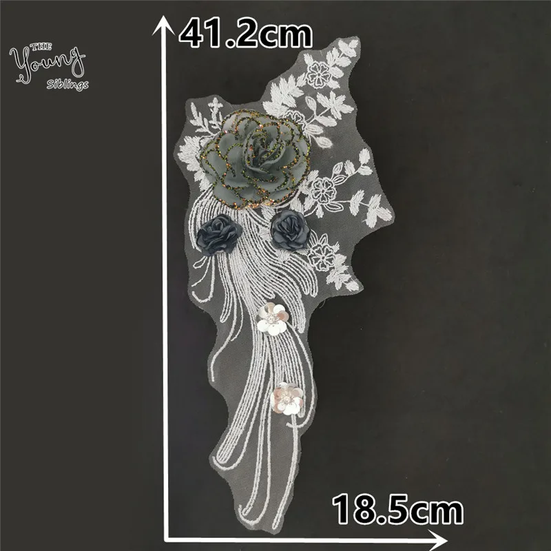 Воротник кружевной с 3D вышивкой и цветочной аппликацией для шитья одежды