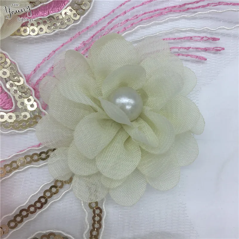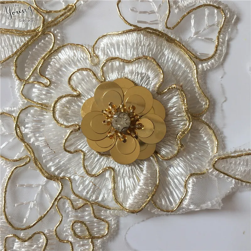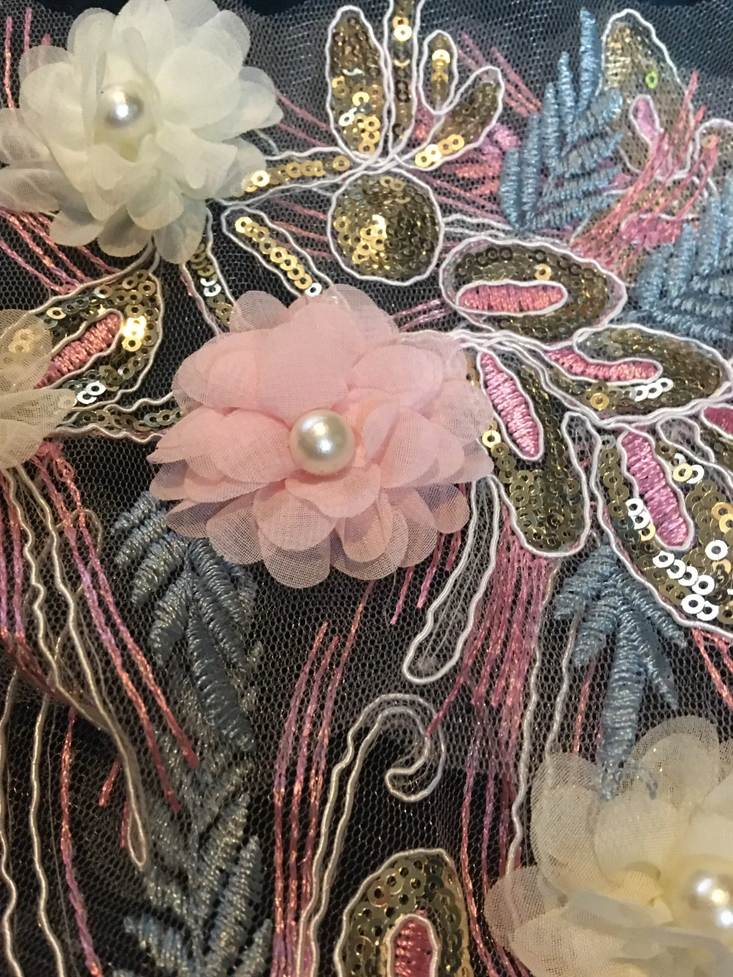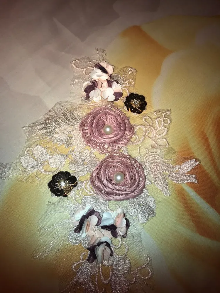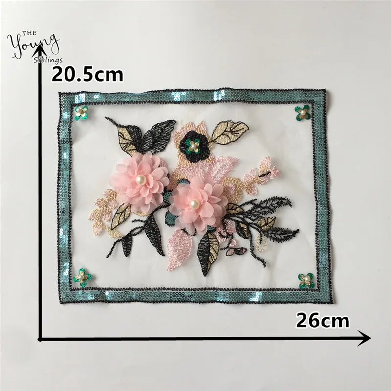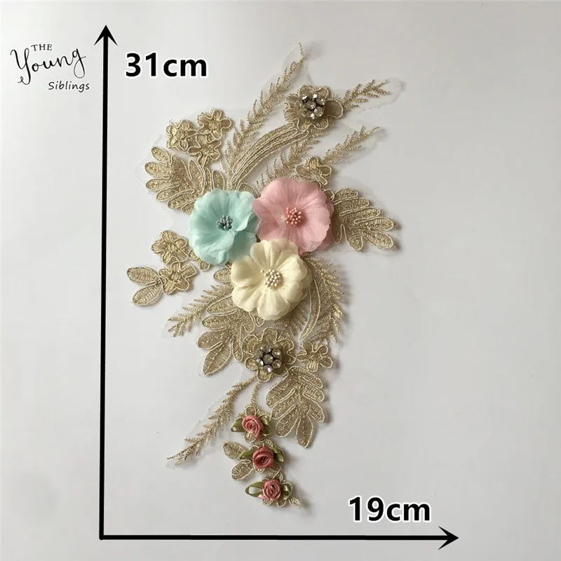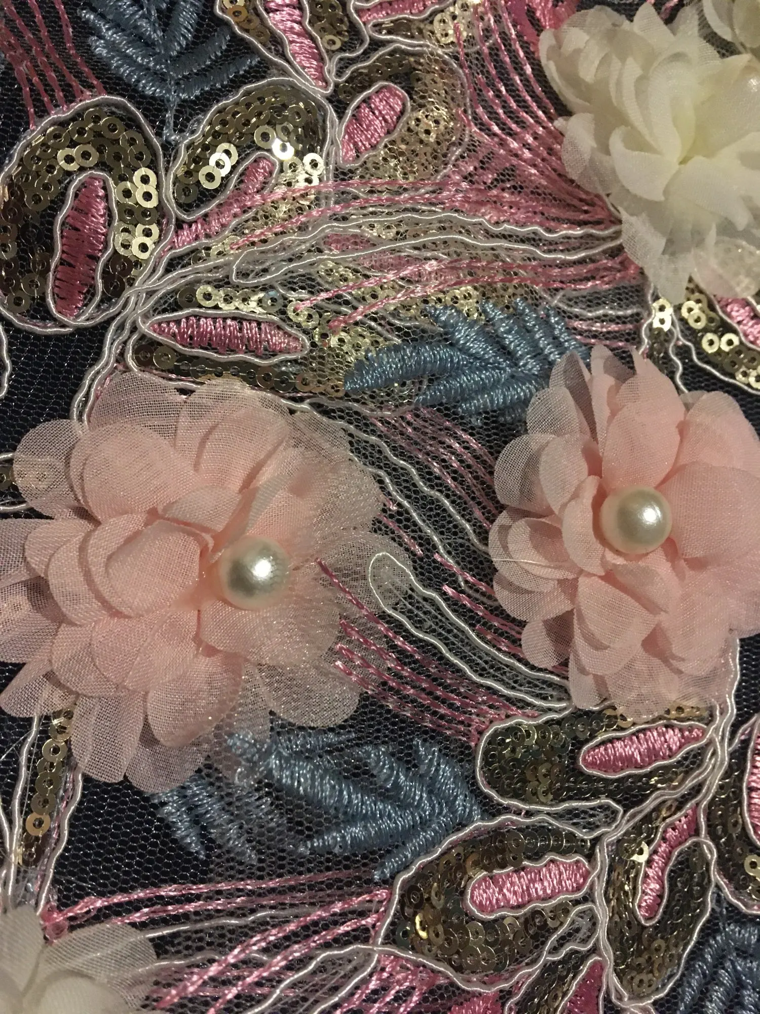 Воротник кружевной с 3D вышивкой и цветочной аппликацией для шитья одежды