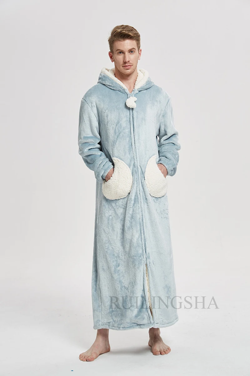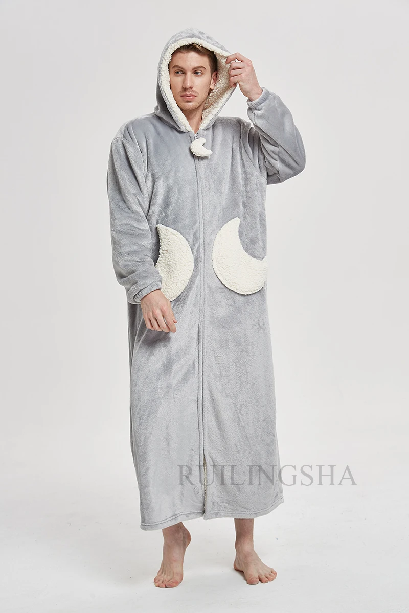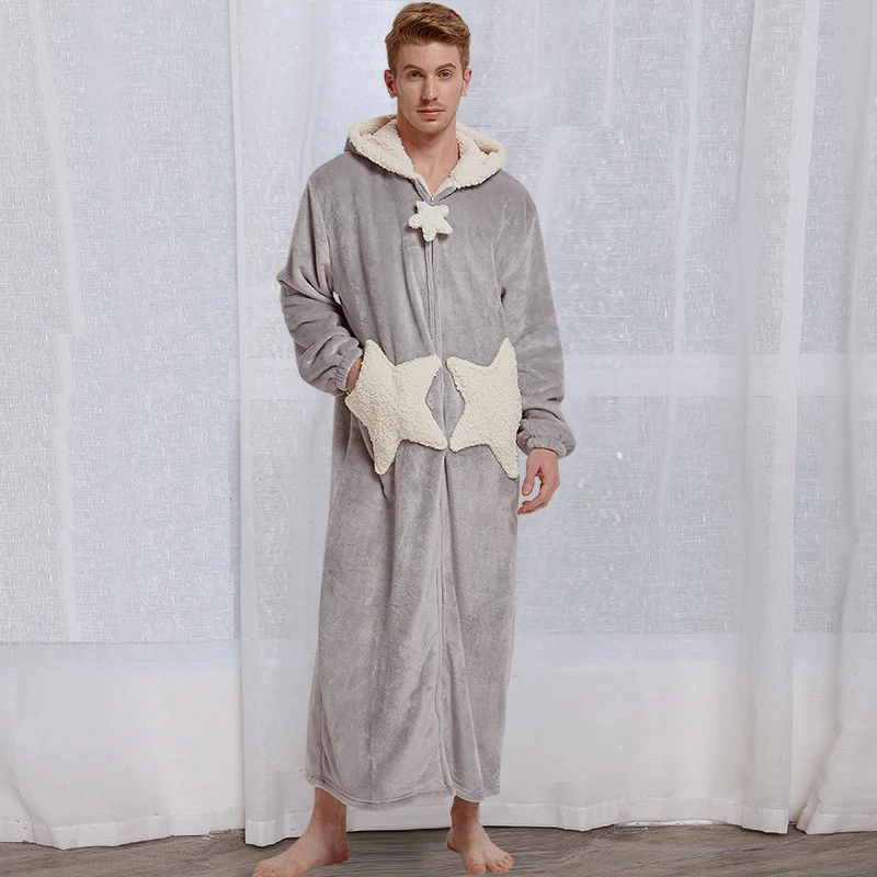 Мужской зимний длинный теплый плотный фланелевый Халат большого размера банный халат с капюшоном Звезда Луна коралловый флис банный халат кимоно одежда для сна Ночное платье