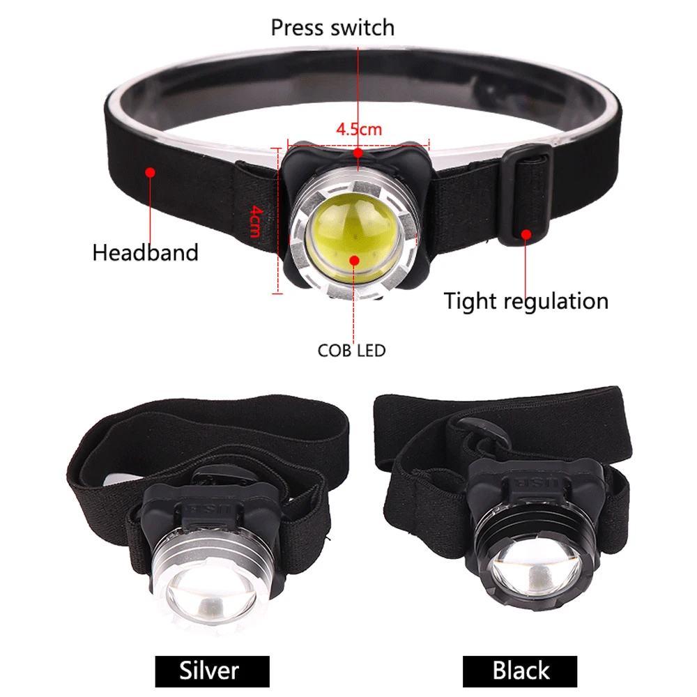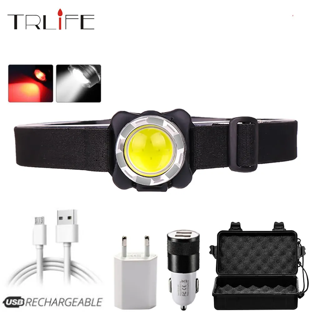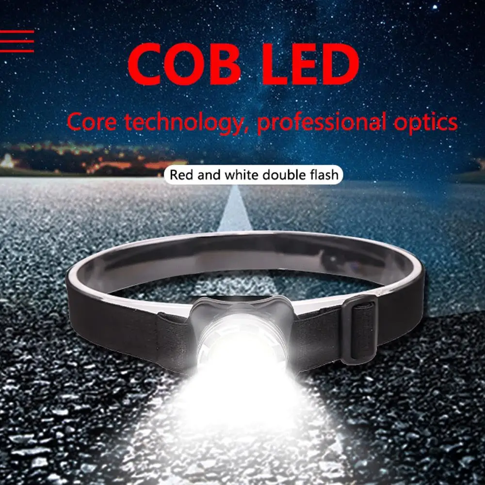 Светодиодный налобный фонарь с COB матрицей, водонепроницаемый Головной фонарь со встроенным аккумулятором и зарядкой через USB, белый и красный цвета, освещение для кемпинга