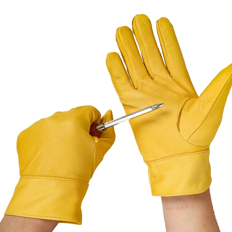 Рабочие перчатки QIANGLEAF 530 для мужчин и женщин, желтые рабочие перчатки из воловьей кожи для вождения, садоводства, домашних работ