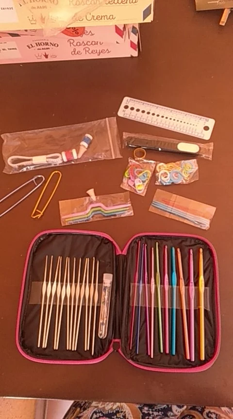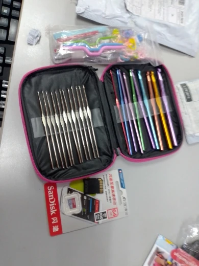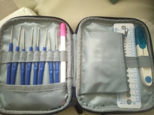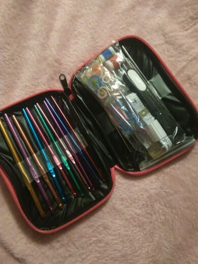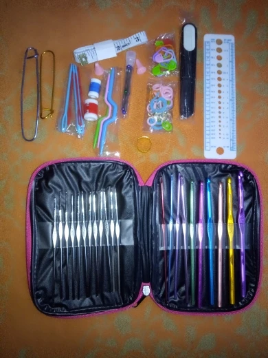 Замечательный набор. Много всяких разных штуч ек. Некоторые даже не знаю, как использовать. Очень удобно, что это все в футляре. Есть иглы с большими ушками, линейка для опрелеления крючка, в зависимоти от толщины пряжи. В обшем, радость для рукоделия. Все пришло быстро и аккуратно упаковано. Срасибо