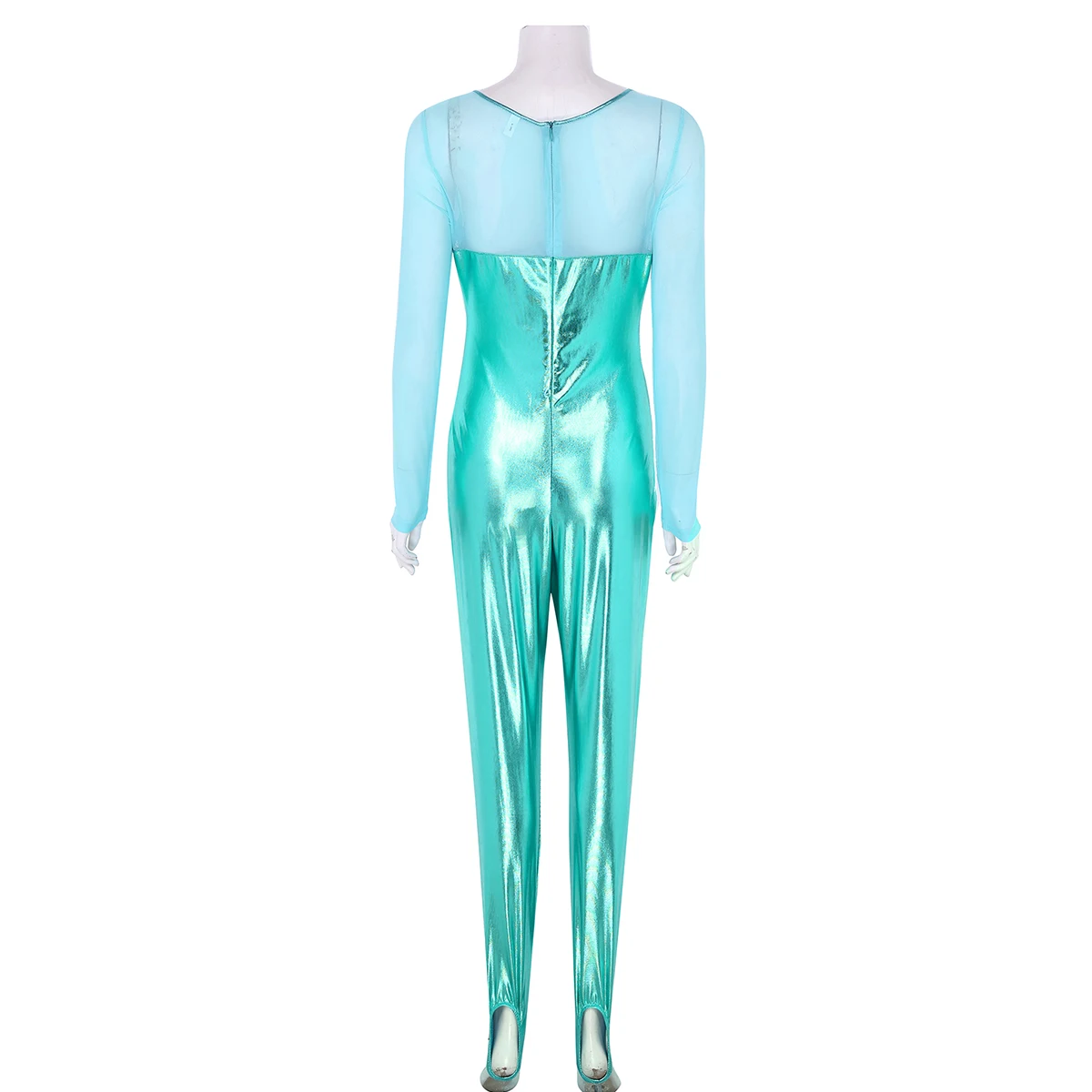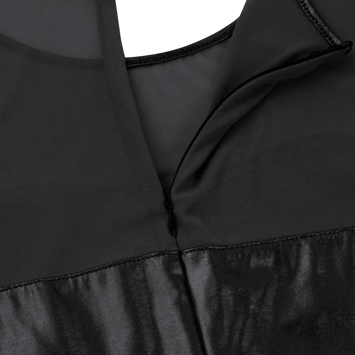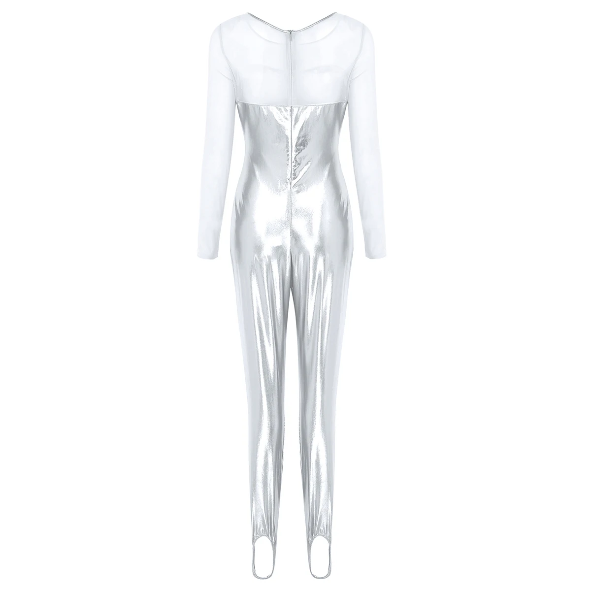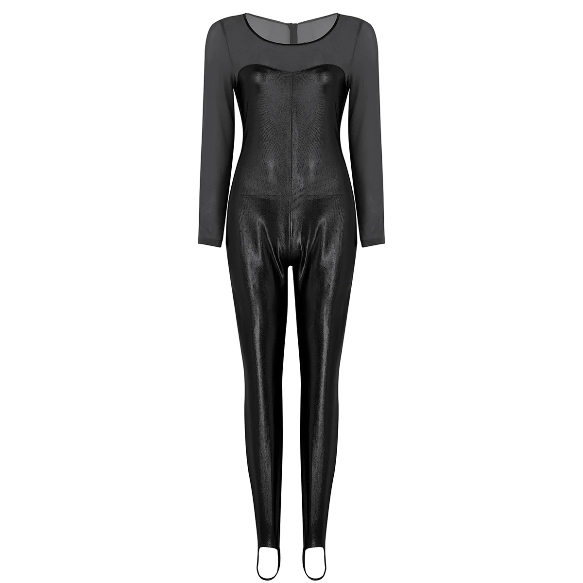 Женский цельный Блестящий Комбинезон Боди для танцев, потайная молния сзади. Глубокий вырез горловины и длинные рукава, прозрачная сетчатая верхняя часть лифа, дизайн со швами для ног, чтобы избежать движения. Хорошая эластичная и мягкая ткань, плотно облегающая и закрывающая тело, демонстрирует хорошие изгибы тела, привлекает внимание. Идеально подходит для вечеринки, ночного клуба, сценического представления, костюмированных вечеринок, Хэллоуина и т. д. Пожалуйста, внимательно проверьте таблицу размеров перед покупкой, рекомендуется ручная стирка.