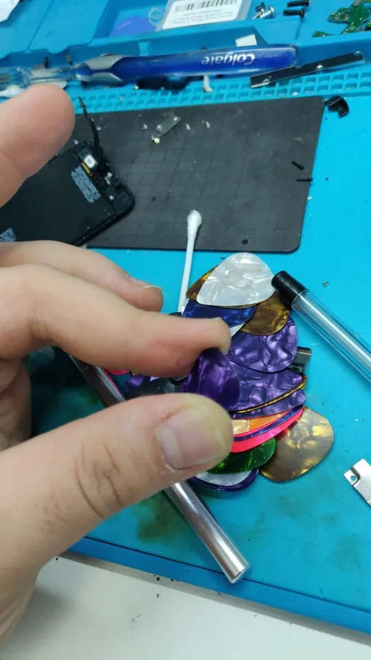 Die sind auch tatsächlich sehr dünn und passen in jede Lücke rein. Damit kann man jedes Display trennen und auch andere, wo der Finger nicht reichen würde