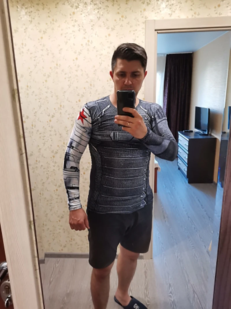 Плохое качество. Поставляется с длинной свободной нитью. Я 180 см и 95 кг, с пухом 2XL, а рубашка все еще свободная. Определенно не компрессионная рубашка. Очень тонкий материал. Подумывал купить комплект (рубашка, брюки, штаны), но рад, что я этого не сделал.