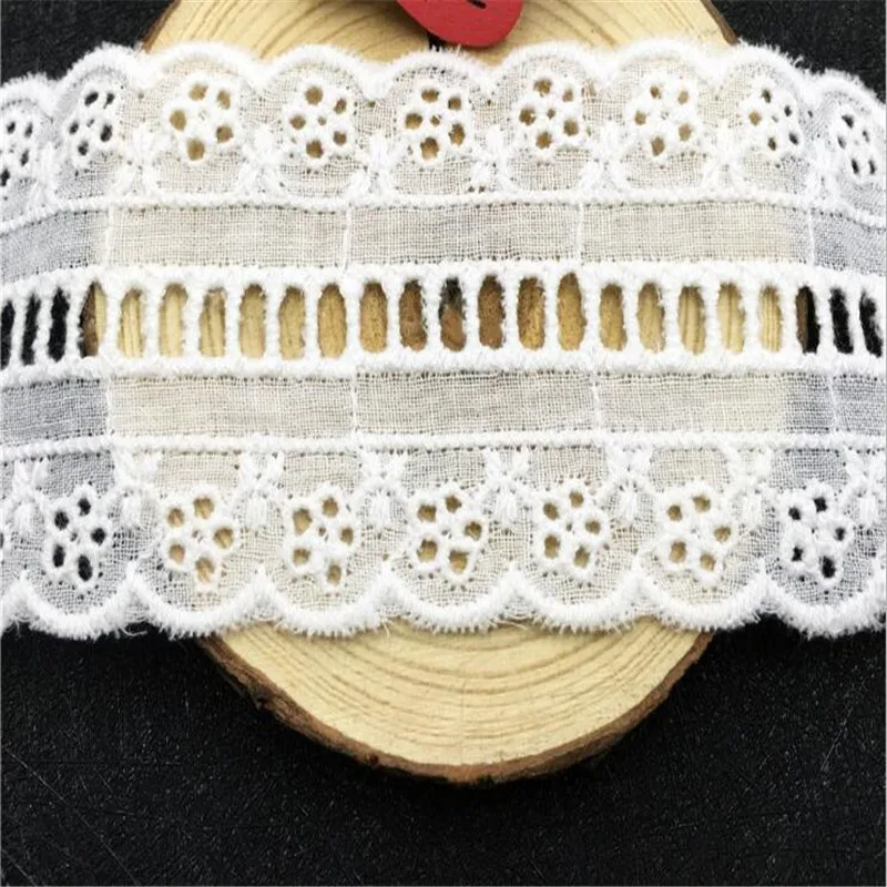 2,5 см хлопковая вышитая лестница решетка кружево хлопковая нить полые волнистые кружева штрих-код