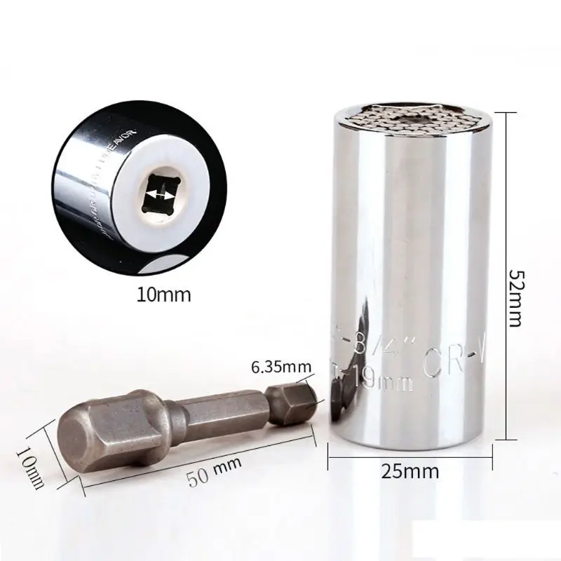Особенности:3/8 привод профессионального класса розетка. Соответствует стандарту ¾ "до ¾" и метрике 7 мм-19 мм.Самонастраивается для всех форм и размеров крепежа, за исключением идеально круглой головки, Просто наденьте край.Особенно хорошо работает на ржавых и поврежденных головках.Имеет крутящий момент более 100 фунтов/фут мощностиРаботает на электрической дрели. ¼ "адаптер питания включенЗаменен набор инструментов. Так прост в использовании, не только для продавца, но и достаточно прост в использовании