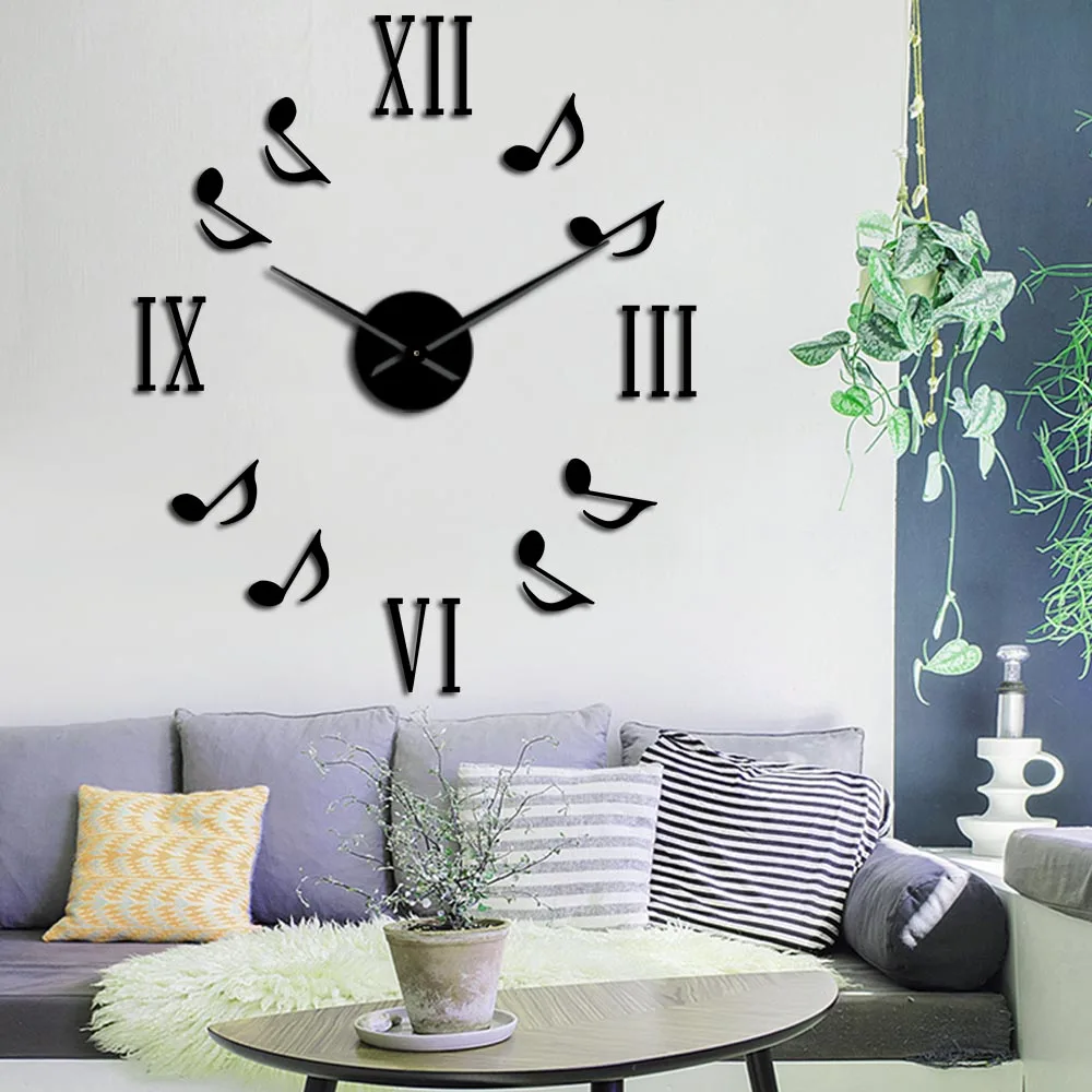Часы настенные с римскими цифрами и музыкальными нотами, роскошные беззвучные современные большие наручные часы с иглой, подарок для любителей DIY