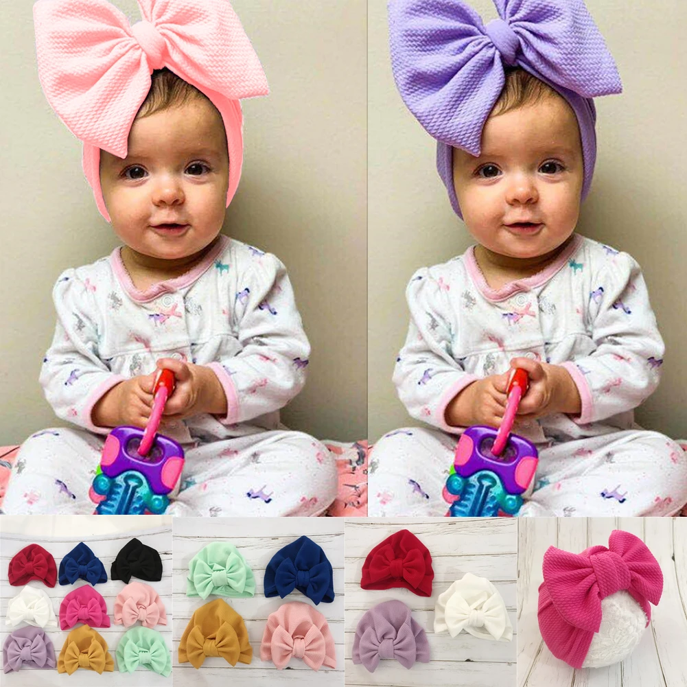 Милая хлопковая шапка для маленьких девочек с большим бантом, повязка на голову в виде тюрбана, повязка на голову с узлом, шапочки для девочек, шапки для новорожденных, реквизит для фотосъемки