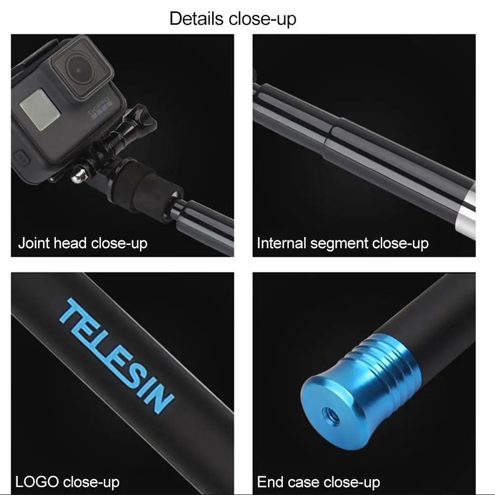 Селфи-палка TELESIN из углеродного волокна, длинная, для GoPro YI SJCAM и других экшн-камер, длина до 2,7 м