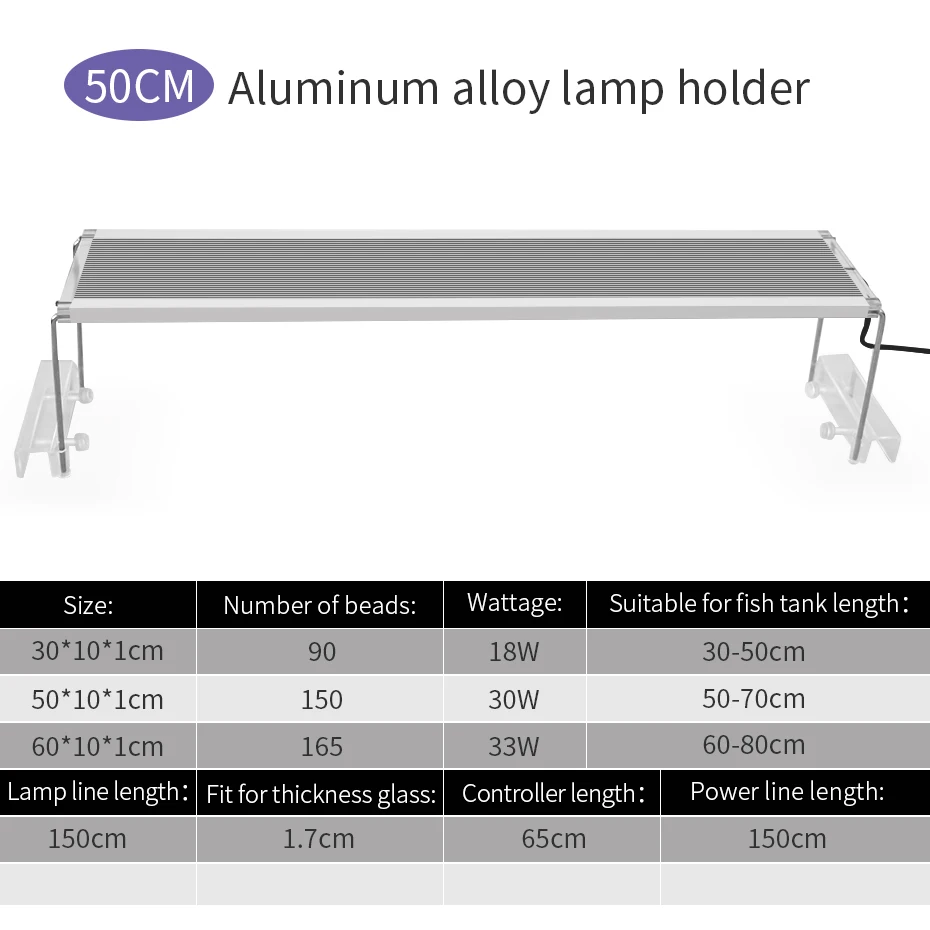Спецификация освещения аквариума 50 см:Супер-яркая и высококачесветодиодный Светодиодная лампа для аквариума, 150 светодиодных ламп SMD 5050.