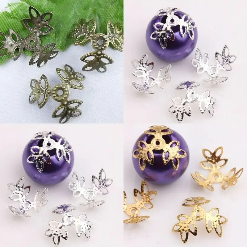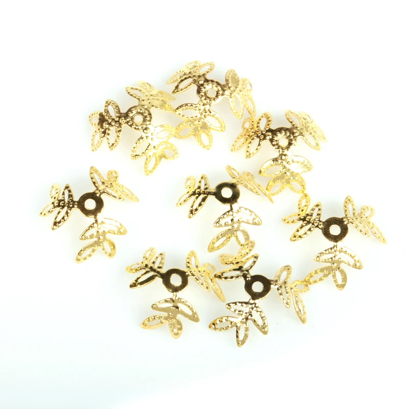 Колпачки для бусин с филигранными листьями, 18 мм, 100 шт.