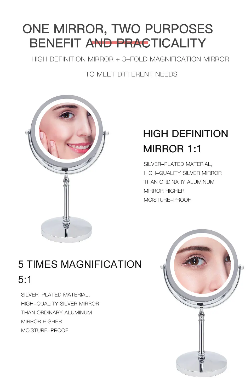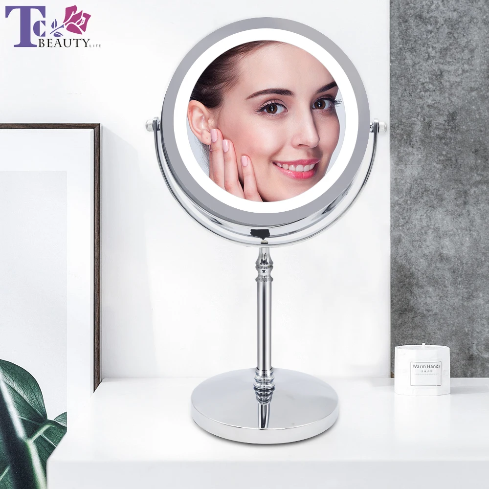 Светодиодное зеркало для макияжа 5X настольное косметическое зеркало Двухстороннее косметическое зеркало с подсветкой Прямая поставка