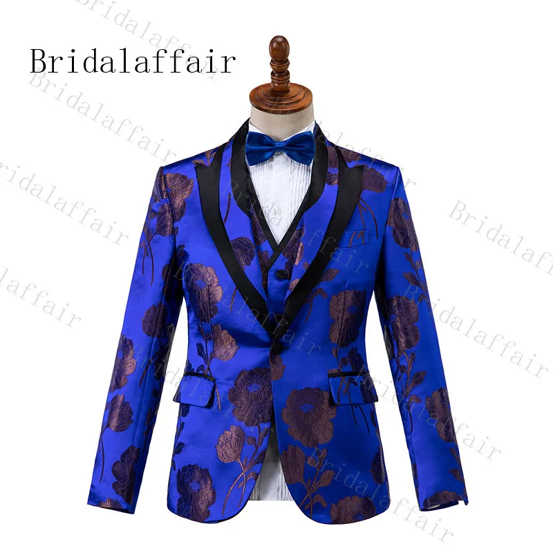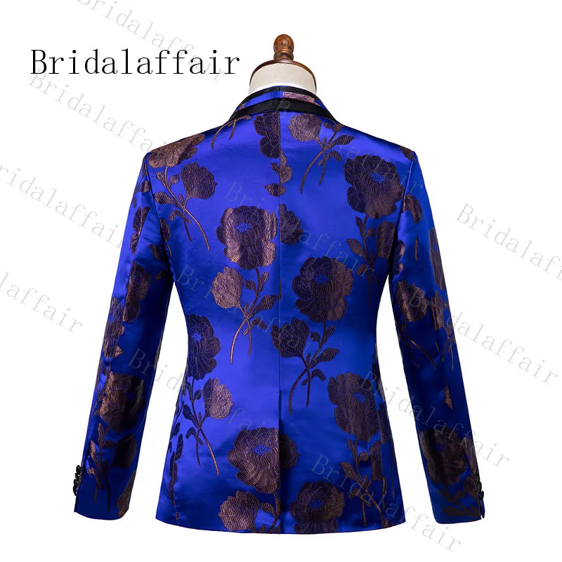 Мужской костюм Bridalaffair, темно-синий костюм с лацканами, свадебный смокинг с золотым цветком, 2019