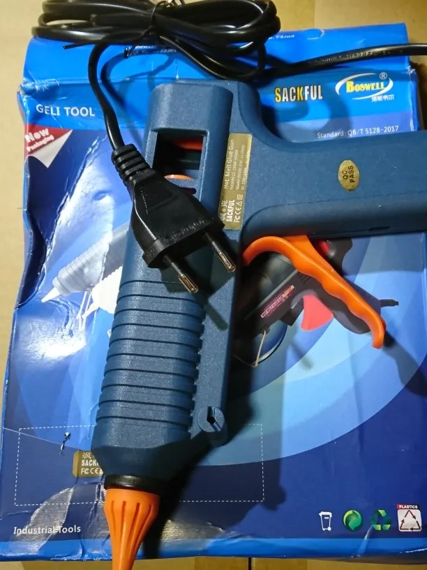 12 дней в Великобританию. Упаковано в коробку, хорошо упаковано. Все как показано, хорошее качество. Благодаря регулируемому нагреву, разному размеру насадок и достойному уровню мощности, все мои коробки по хорошей цене. Подставка работает хорошо, поддерживает стабильность. Кабель питания имеет хорошую длину 135 см. Установленное клеевое сопло 2,5 мм. Синий свет питания/нагрева имеет немного мерцания, но, кажется, работает нормально, так что не волнуйтесь. Силиконовая накладка-это приятное прикосновение, чтобы вместить ее во время охлаждения. Было бы хорошо, если бы регулировка температуры была фактической ручкой с захватом, как это, вам нужна монета или аналогичная регулировка. Но это небольшой момент, и моя единственная жалоба. Инструкции на хорошем английском языке. Нагревание занимает немного времени, но не долго. Сначала покурил немного, но в инструкции говорят, что стоит этого ожидать. Клеевые полоски кажутся хорошим качеством, расплава и могут быть оставлены внутри пистолета, если остались остыть с соплом вниз. Приклеил мой щит для лица и планировали больше проектов... Я впечатлен, рекомендую товар и продавца.