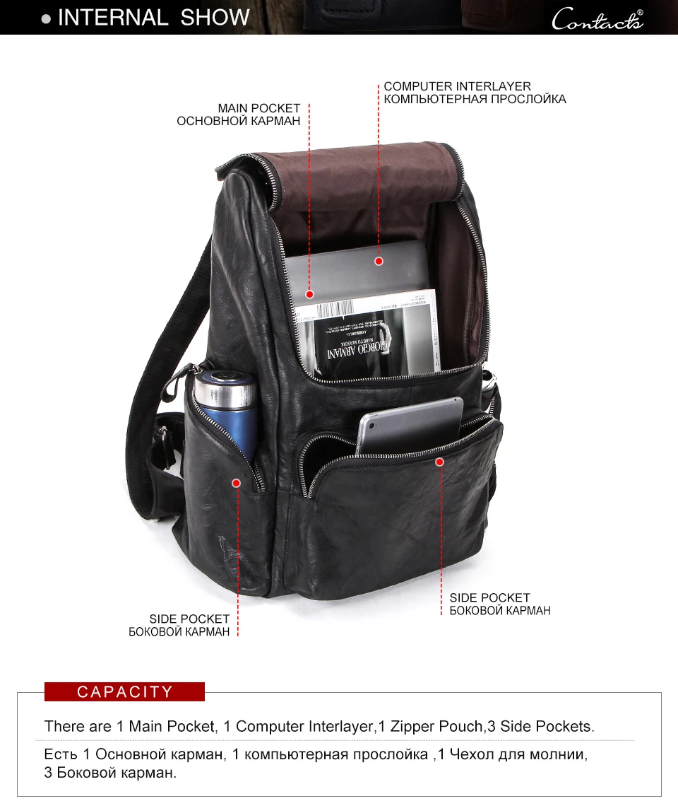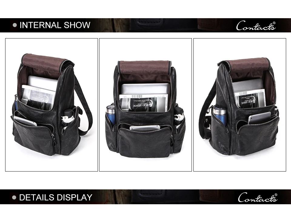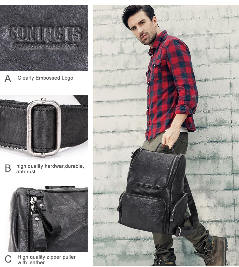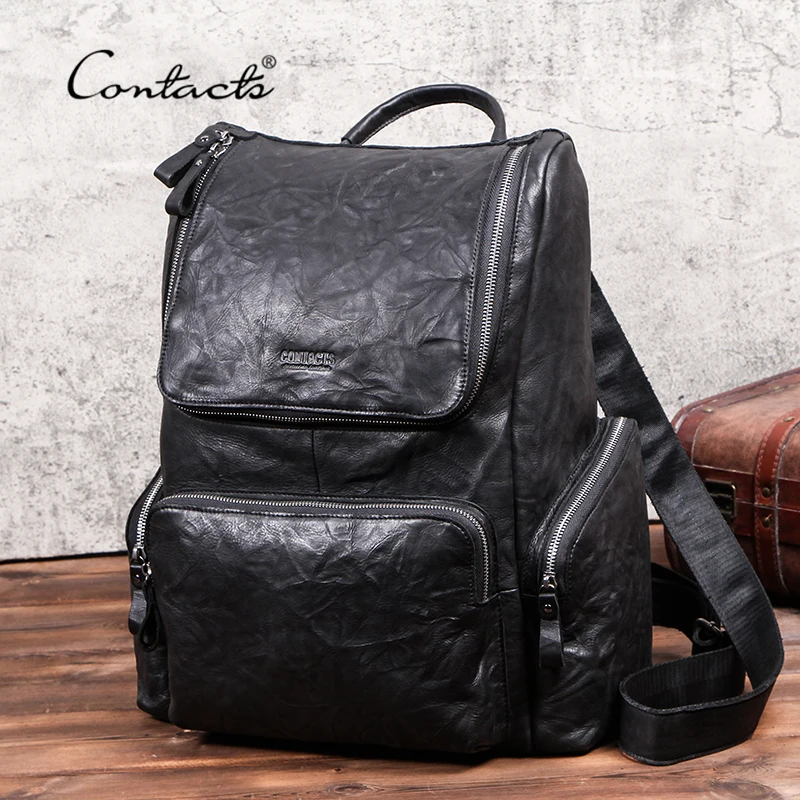 Мужской Дорожный рюкзак CONTACT'S, вместительная сумка из воловьей кожи, повседневный ранец для ноутбука 15 дюймов