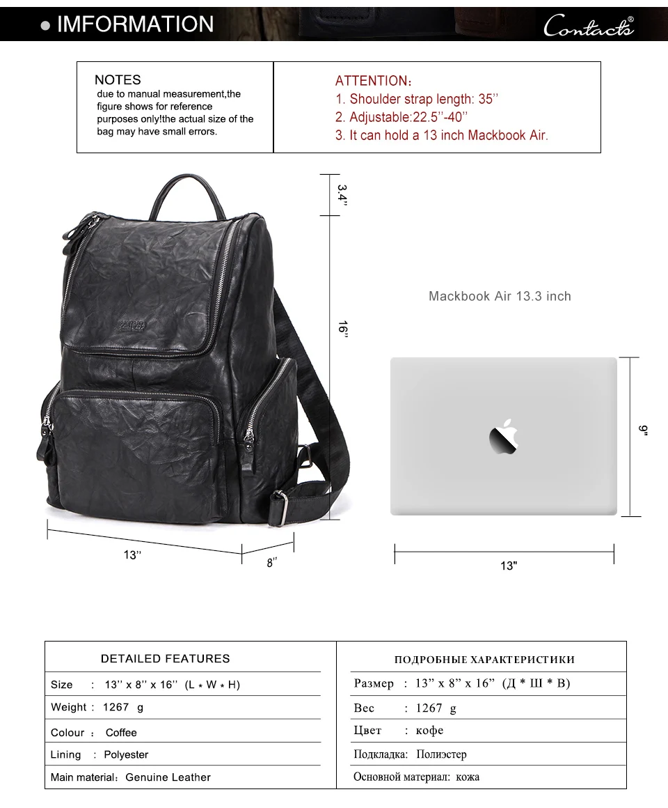 Классный рюкзак. Отличная кожа. Пошито добротно. упаковано было хорошо. Доставка DPD долгая.