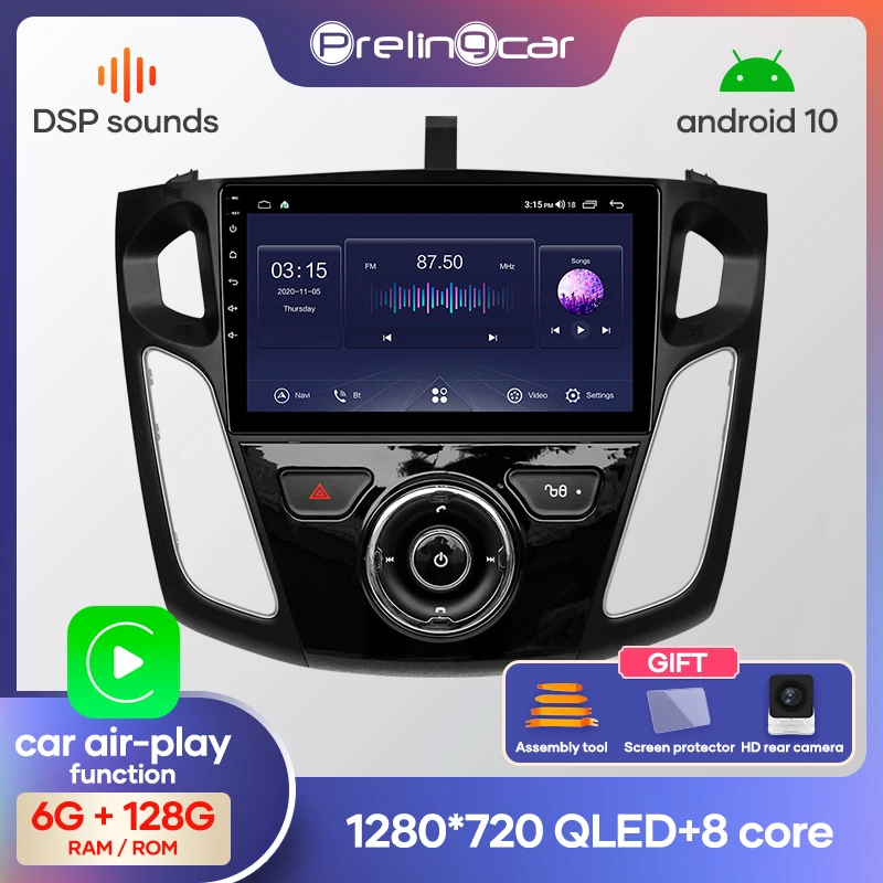 Автомобильный мультимедийный видеоплеер Prelingcar Android 10,0 без DVD 2 Din, GPS-навигатор для Ford Focus 3 2012-2015 Octa-Core 4G