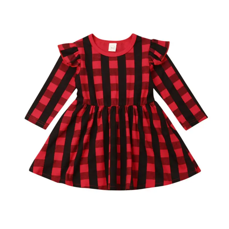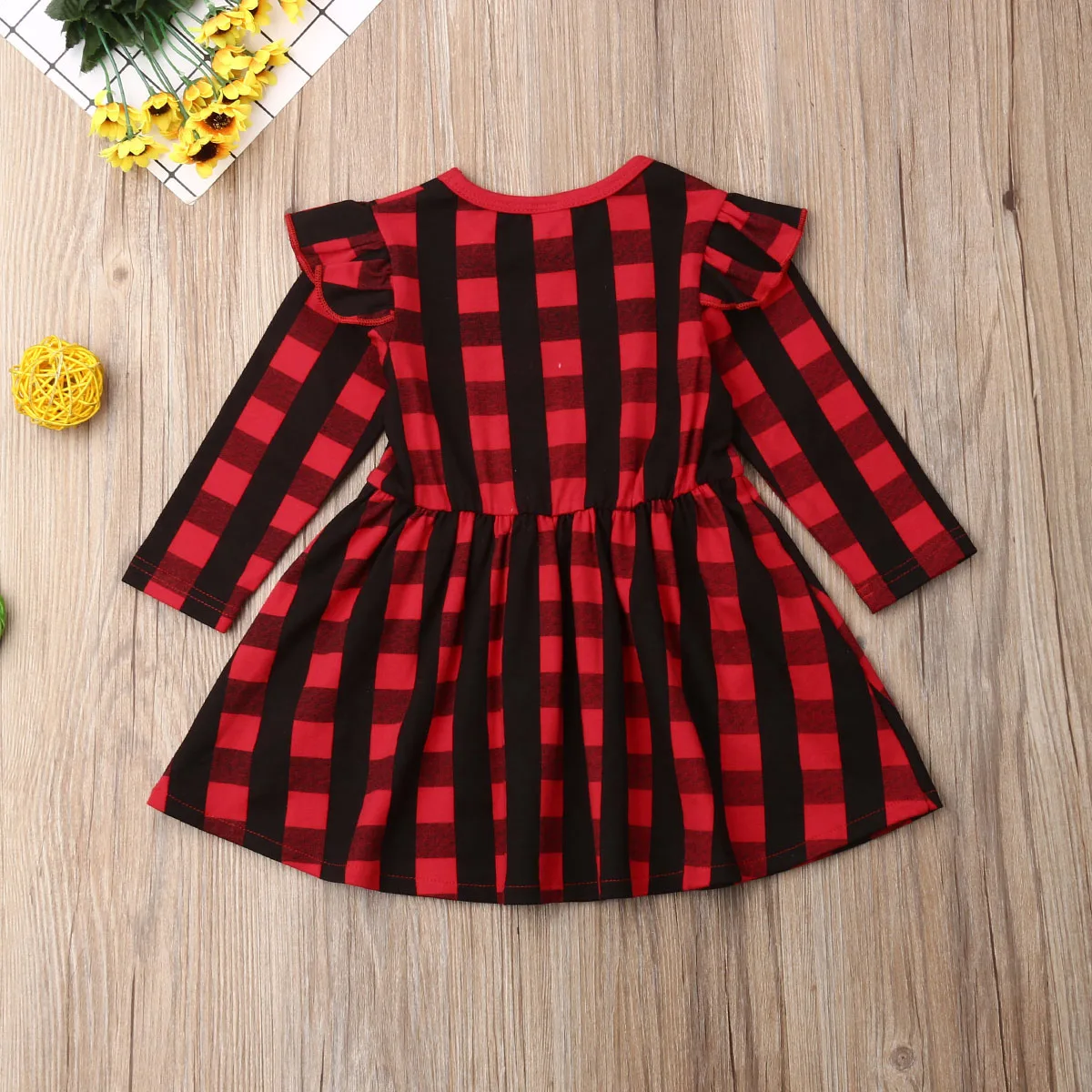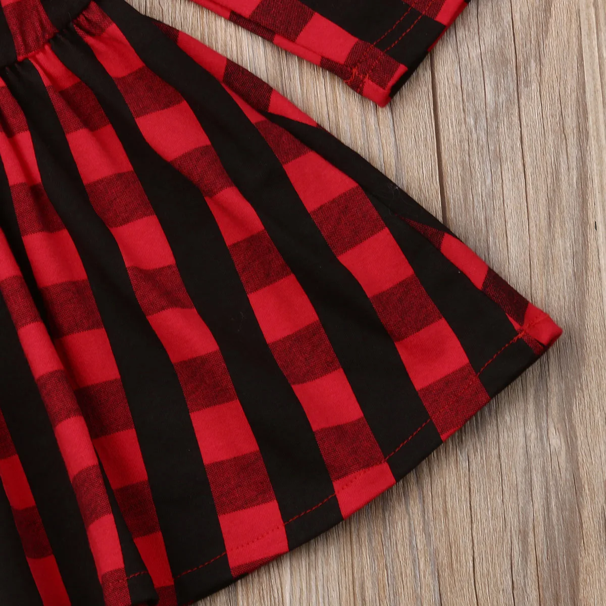 От 6 месяцев до 5 лет платье для девочек, рождественское красное праздничное платье для девочек, детские костюмы с длинным рукавом, клетчатая юбка-пачка