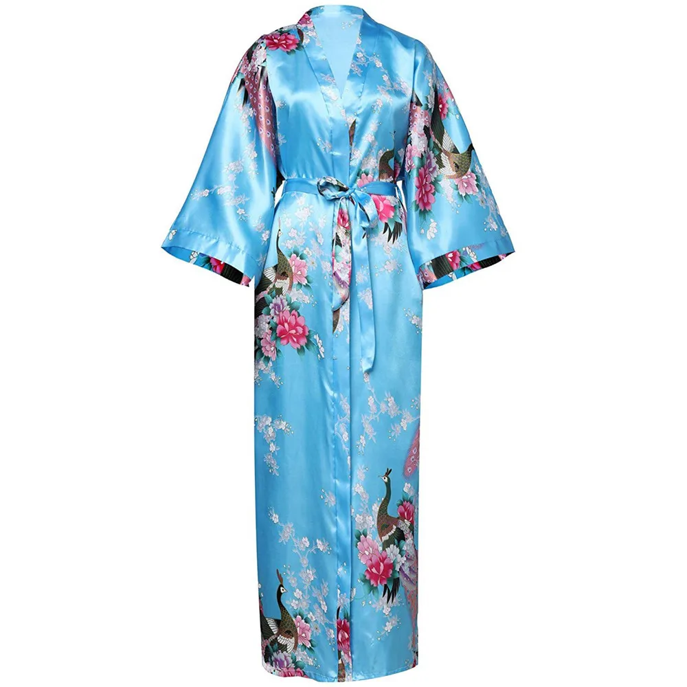 Атласная Домашняя одежда, Свадебный халат для невесты и подружки невесты, Повседневная Длинная Ночная рубашка, пеньюар с принтом, цветочное кимоно, новинка, банный Халат
