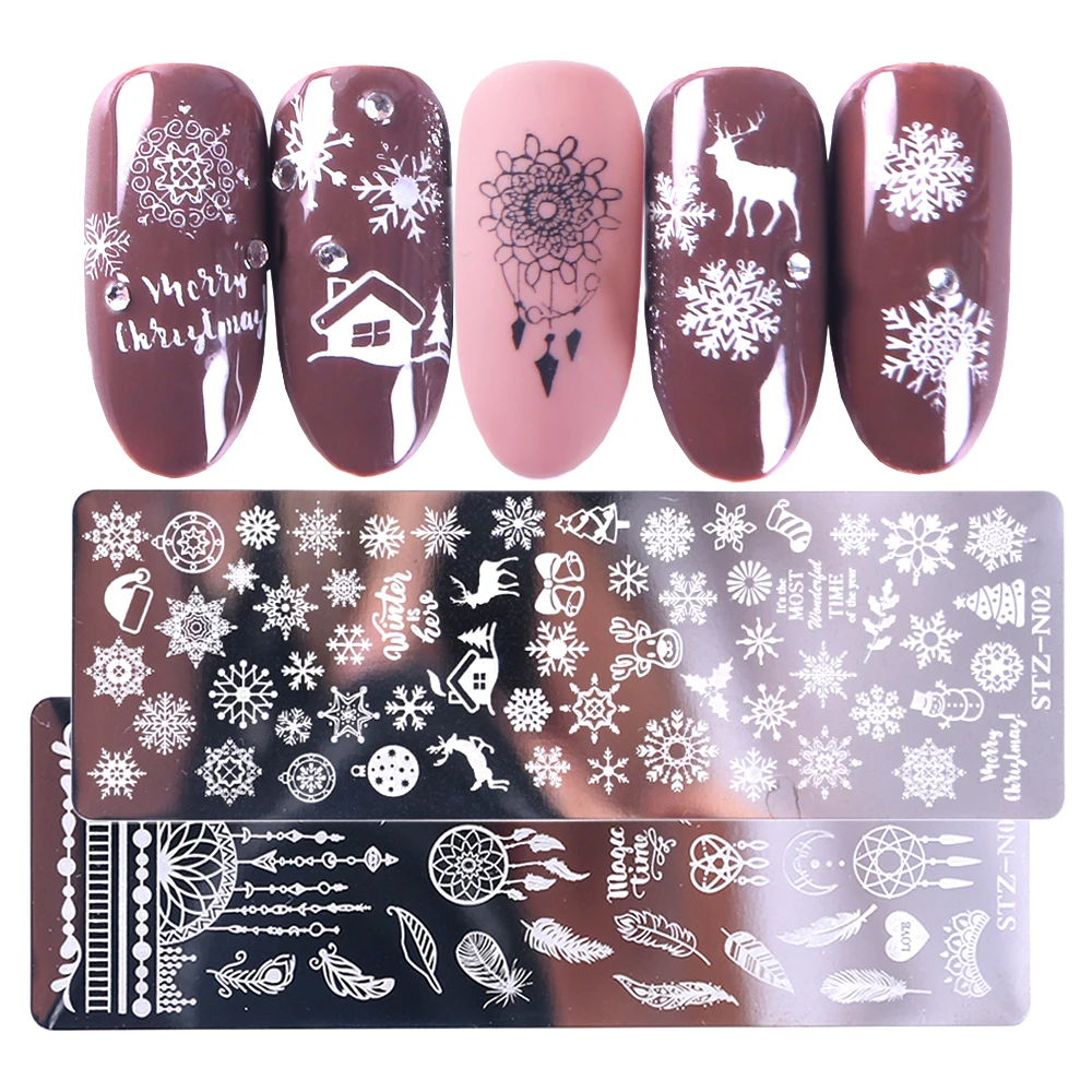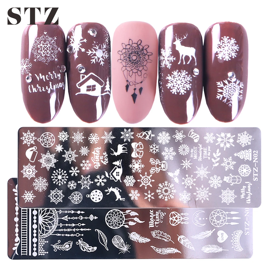 Рождественский дизайн STZ, штамповочные пластины для ногтей, наклейки для дизайна ногтей, шаблоны, трафареты, лак, инструменты для маникюра