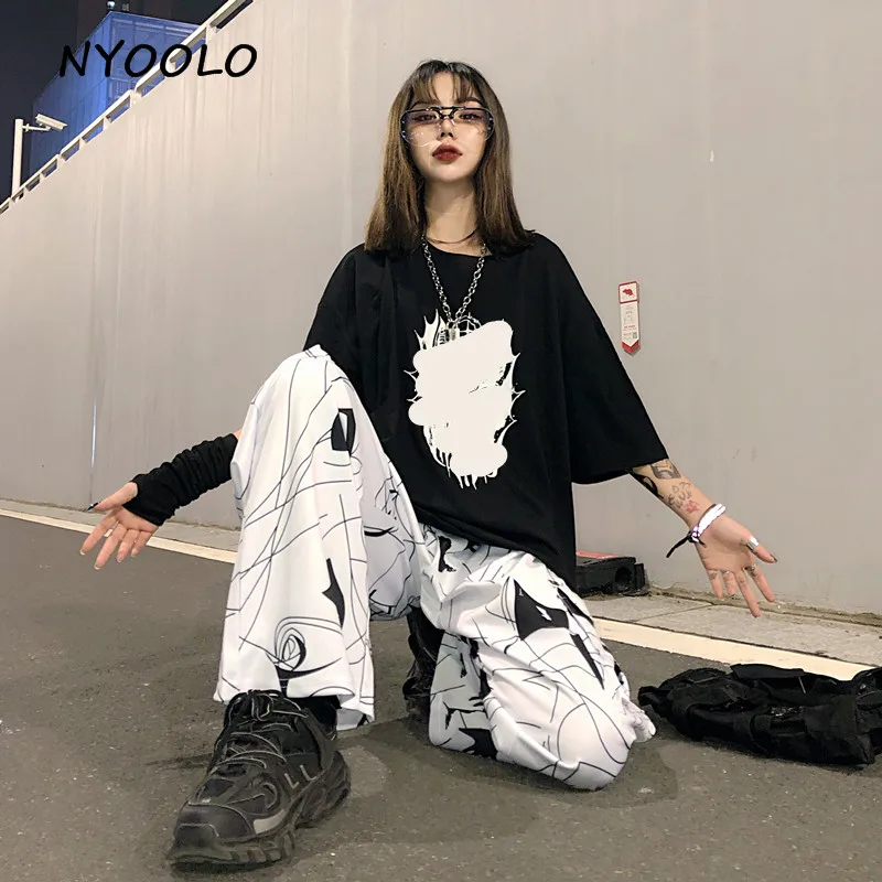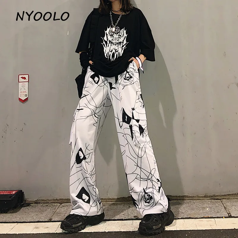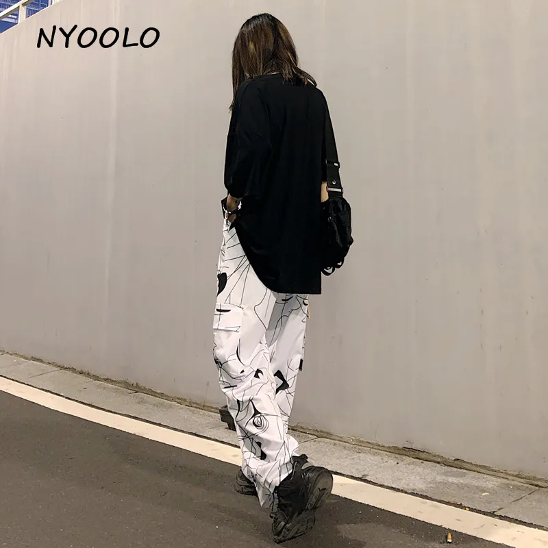 Брюки NYOOLO, повседневные, с геометрическим принтом, с большими карманами, широкие, Осенние, уличные, свободные, с эластичной талией