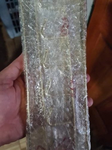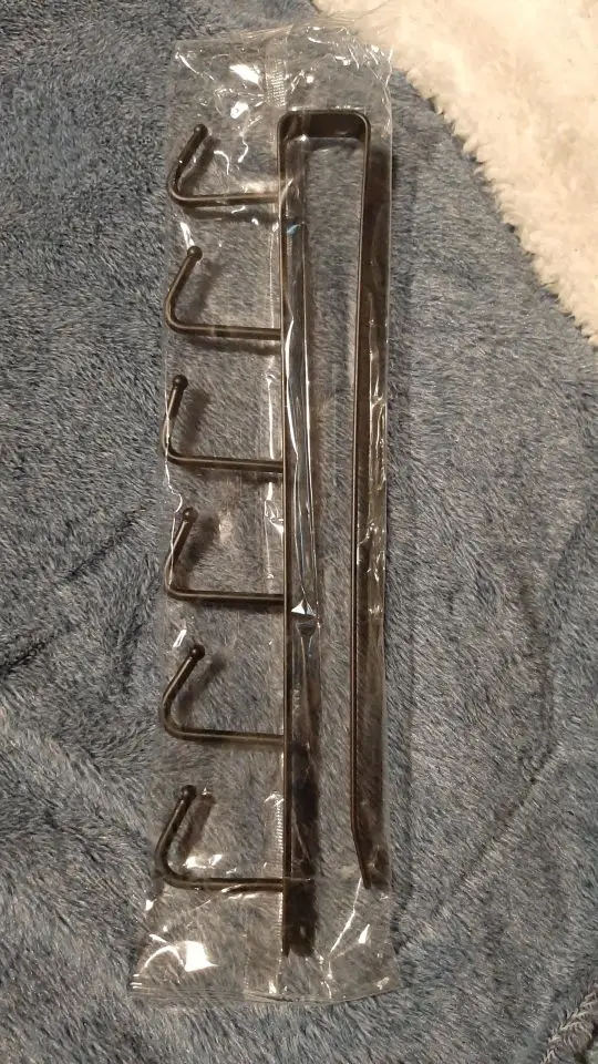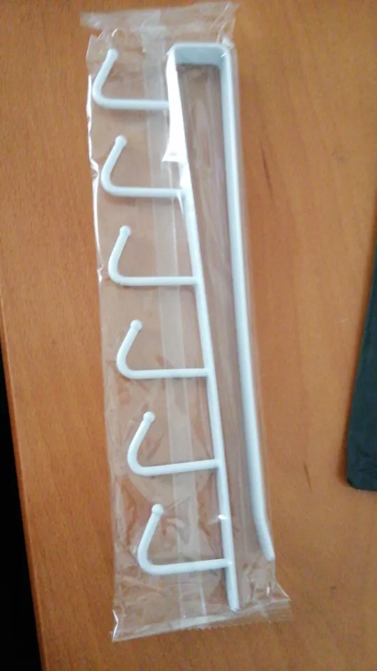 Отправлено вовремя. Посылка пришла в течение 2 недель. Качество исполнения хорошее. Крючки слишком близко друг к другу, что не позволяет повесить предметы с широкой ручкой на них, но это не является недостатком.