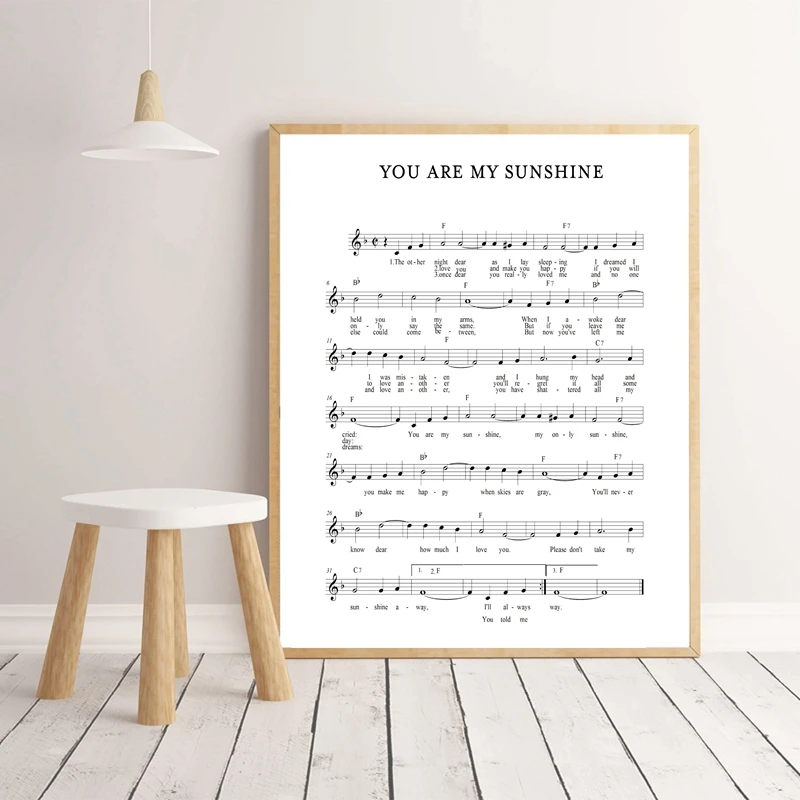 You Are My Sunshine Колыбельная печать, детская Настенная картина, Декор, лист, музыкальный постер, картина, детская комната, домашнее украшение