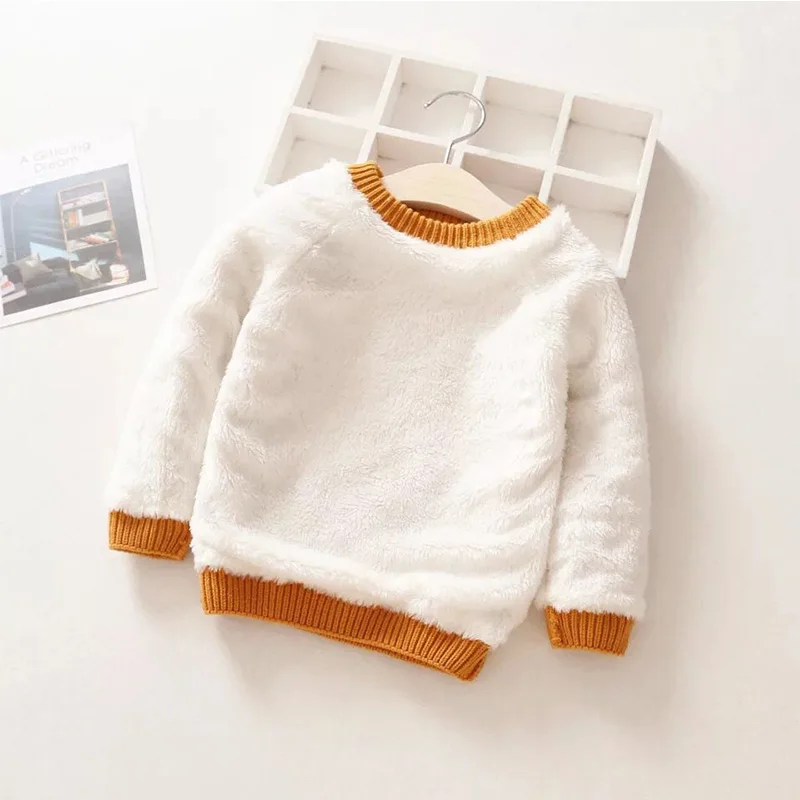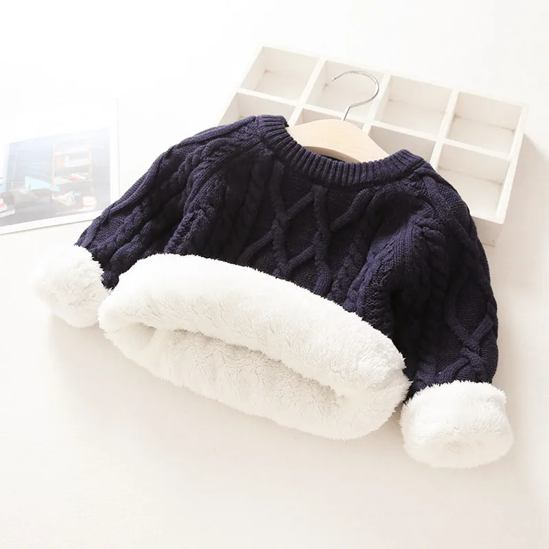 Детский пуловер, вязаный теплый свитер на осень и зиму, плюс бархатная Толстая детская одежда с длинным рукавом для мальчиков и девочек