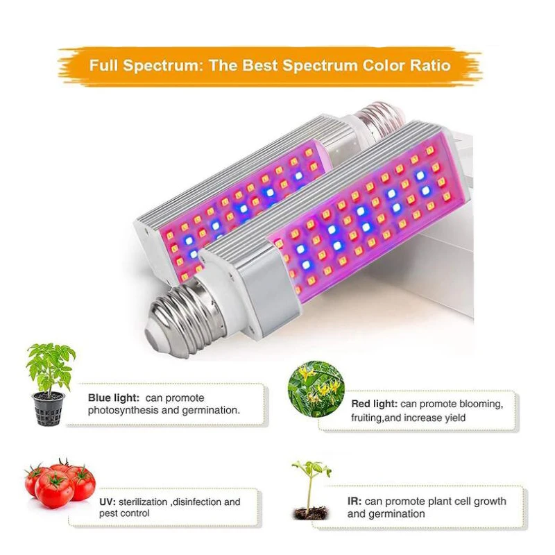 Тип: лампа для растений Количество: 1 шт. Материал: алюминий + ПК Водонепроницаемость: IP42 Тип разъема: E27 Входное напряжение: 5 В постоянного тока Частотный диапазон: 50 Гц-60 Гц Светодиодный чип: 44pcs-SMD2835 Длина светодиодный Ной волны: полный спектр-нм Цвет светильник: красный/синий или солнесветильник