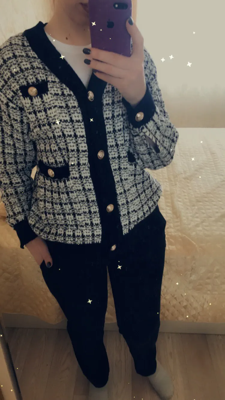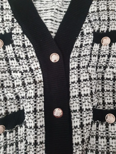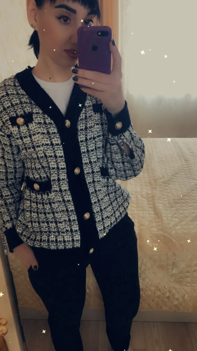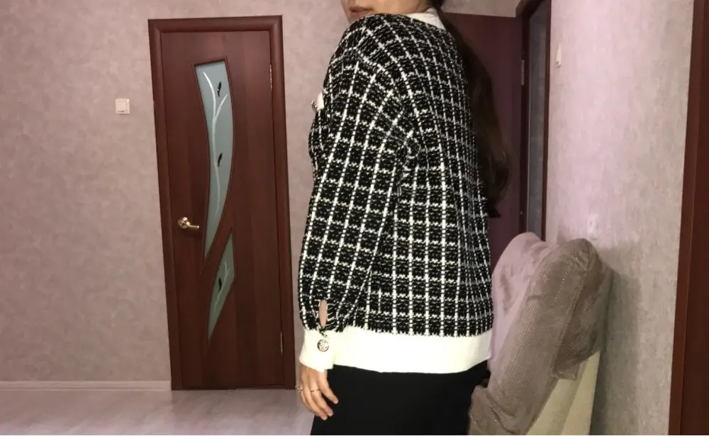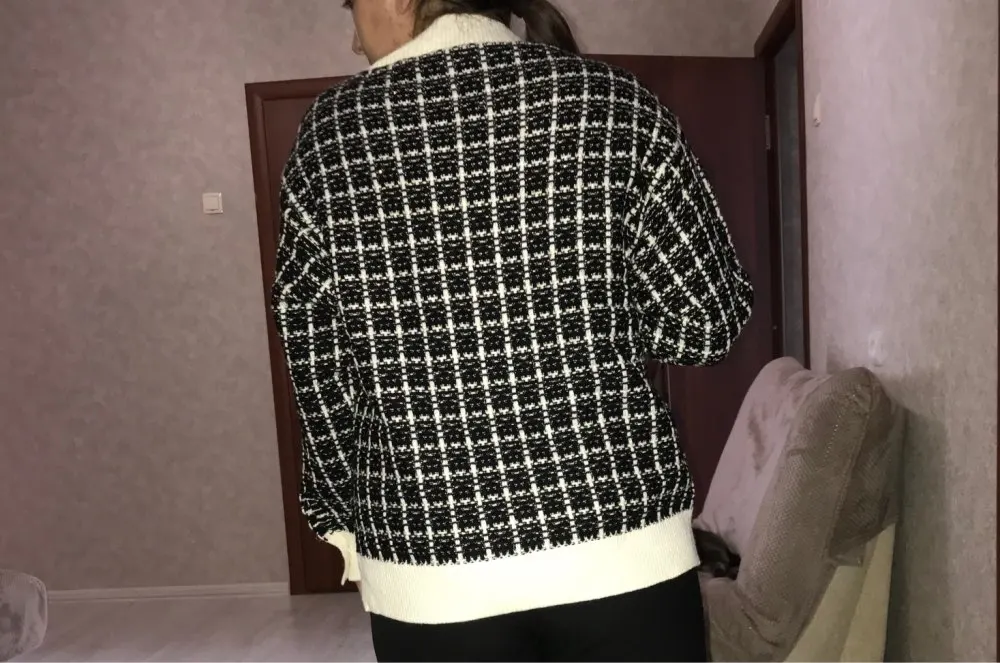 Очень красивый кардиган! Хорошее качество, выглядит точно так же, как на фотографии, но кнопки серебристые, а не золотые. В 165 см и 75 кг это как обычный кардиган, не большой размер: D не сюрприз